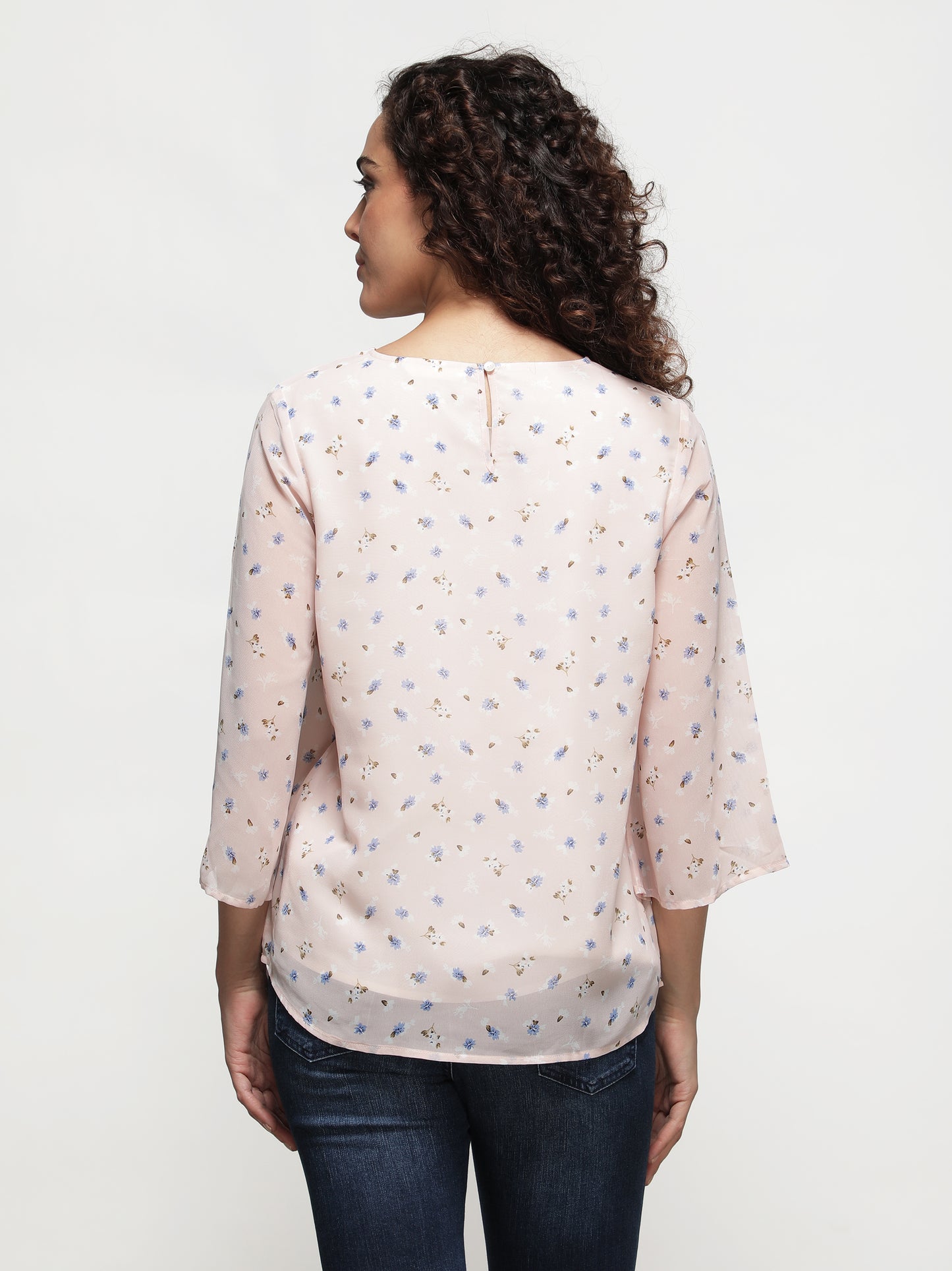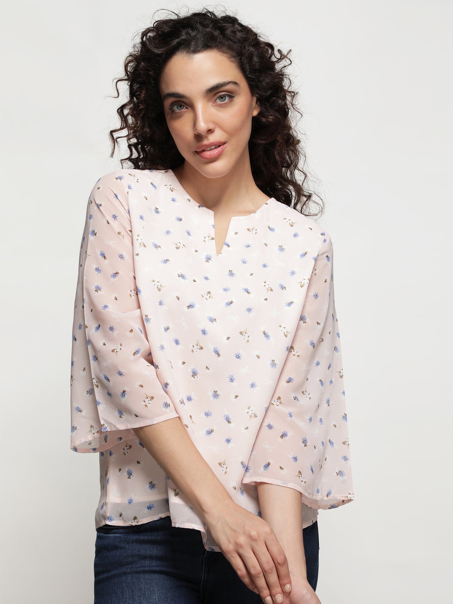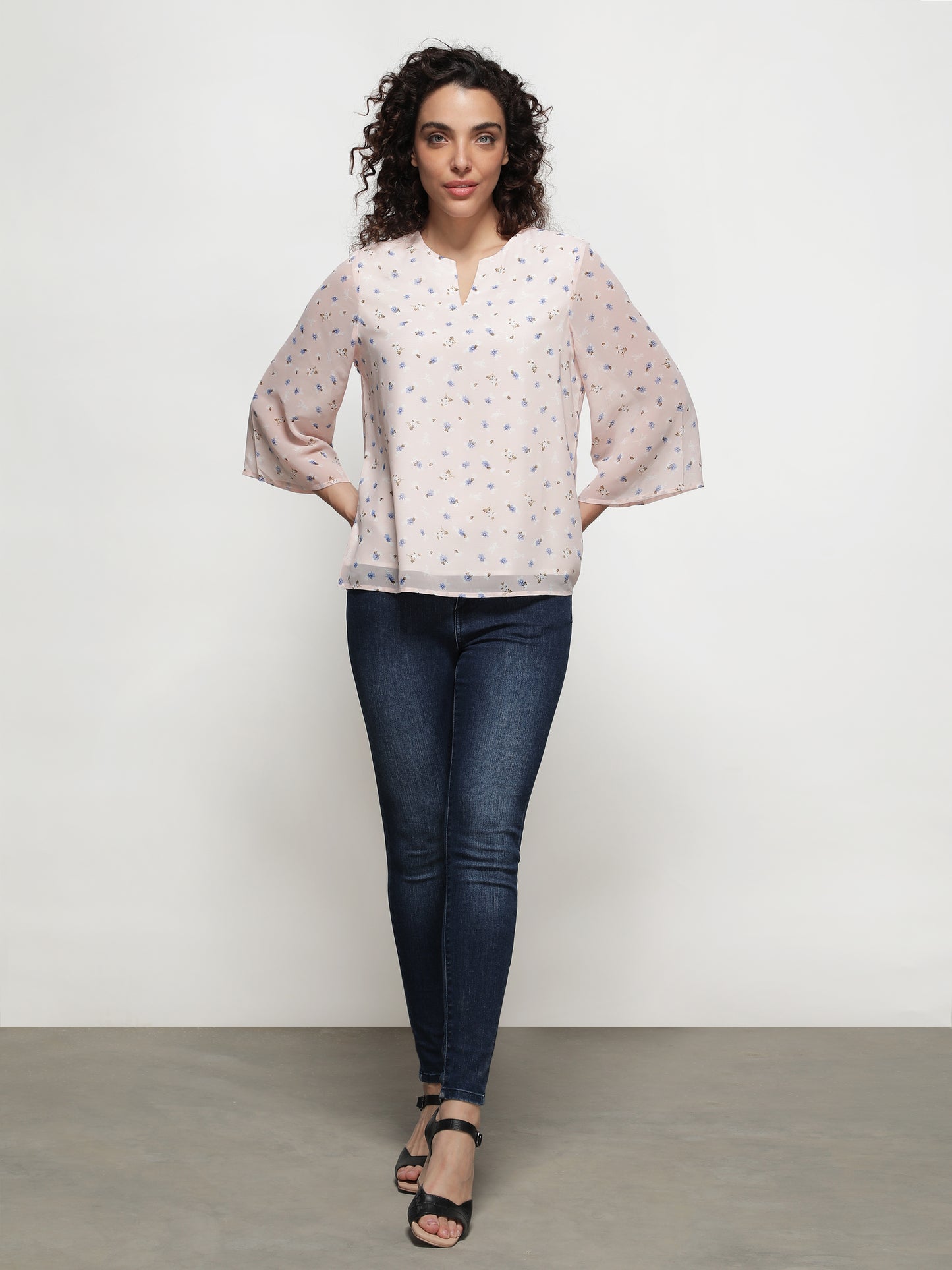Regular price Rs. 899.00This peach printed georgette top is designed for effortless charm. Featuring a round neckline, flowy bell sleeves, and a soft lining for added comfort, this piece is perfect for both casual outings and dressy occasions.