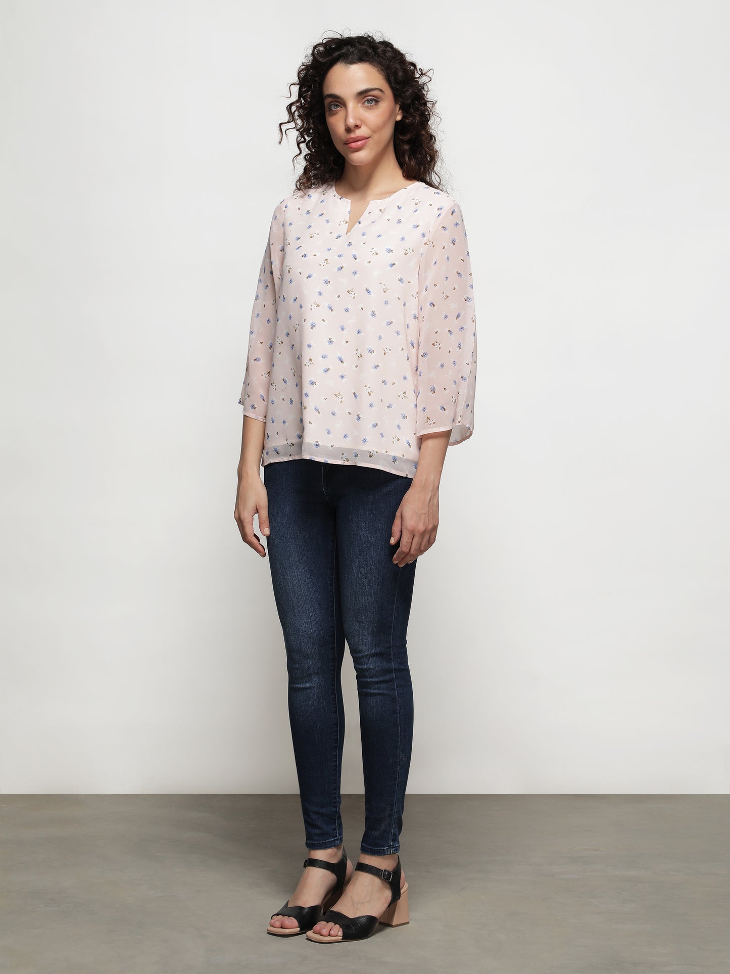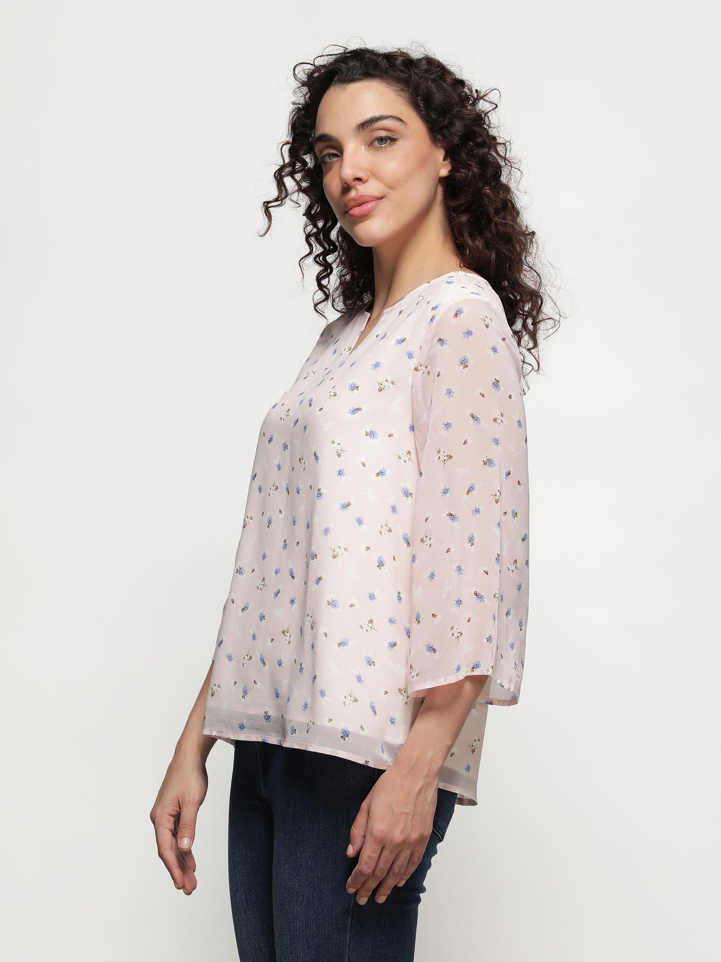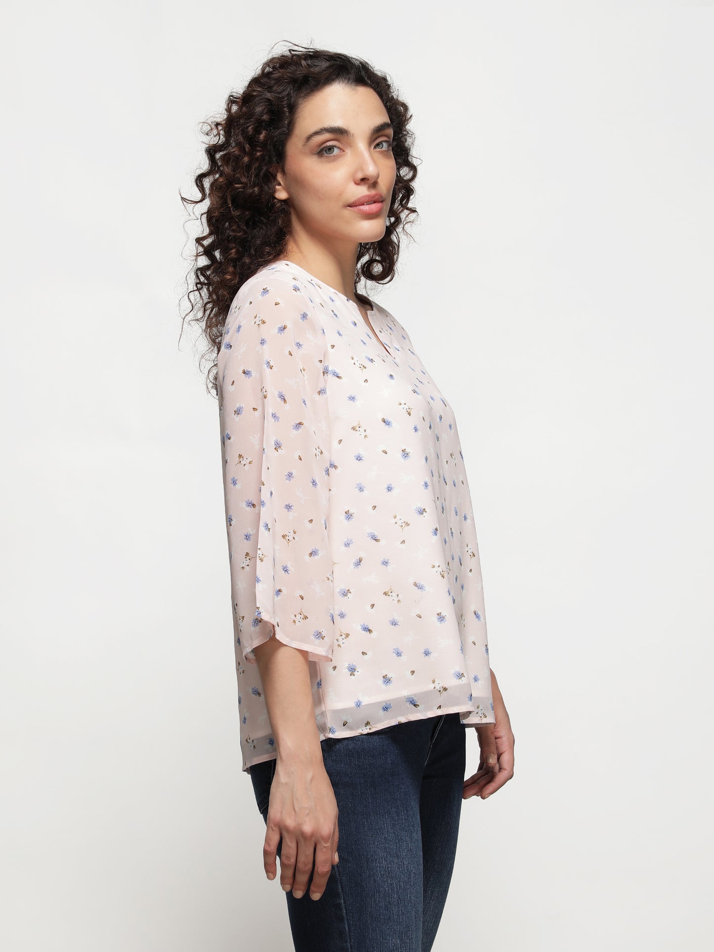 Regular price Rs. 899.00This peach printed georgette top is designed for effortless charm. Featuring a round neckline, flowy bell sleeves, and a soft lining for added comfort, this piece is perfect for both casual outings and dressy occasions.