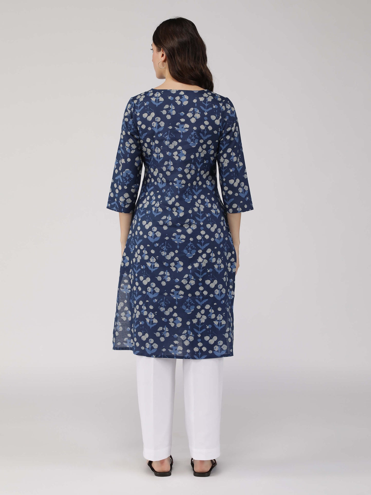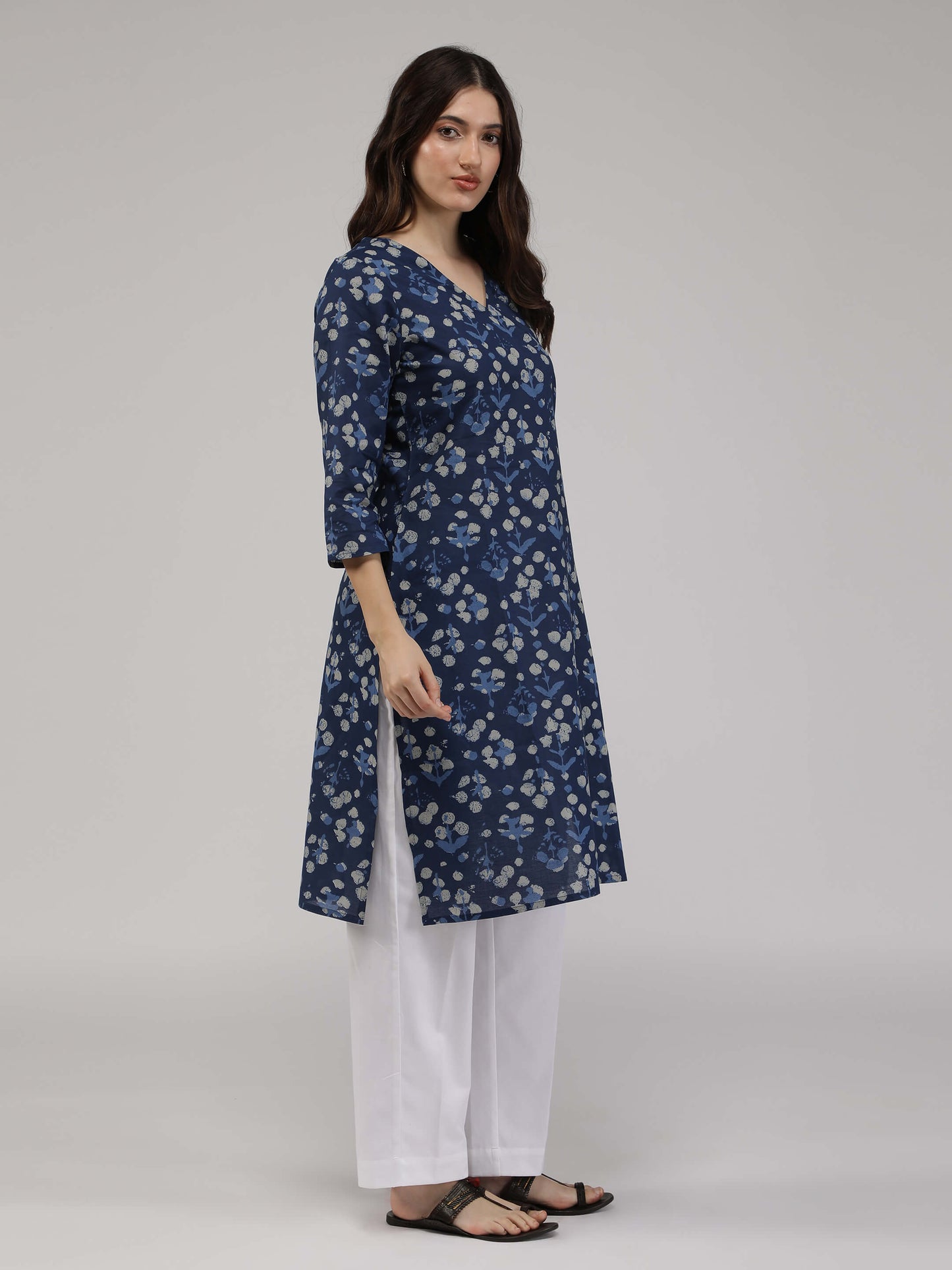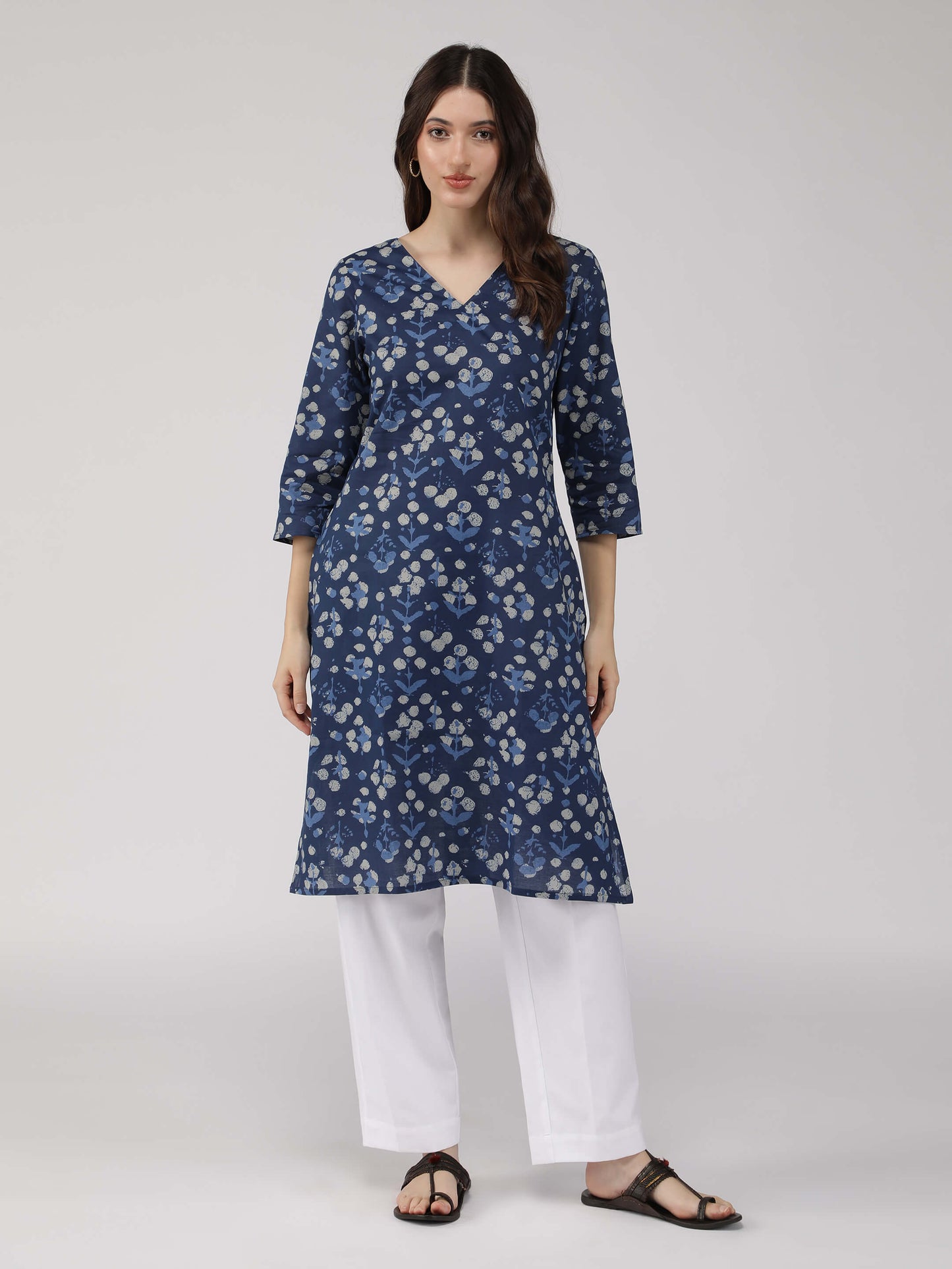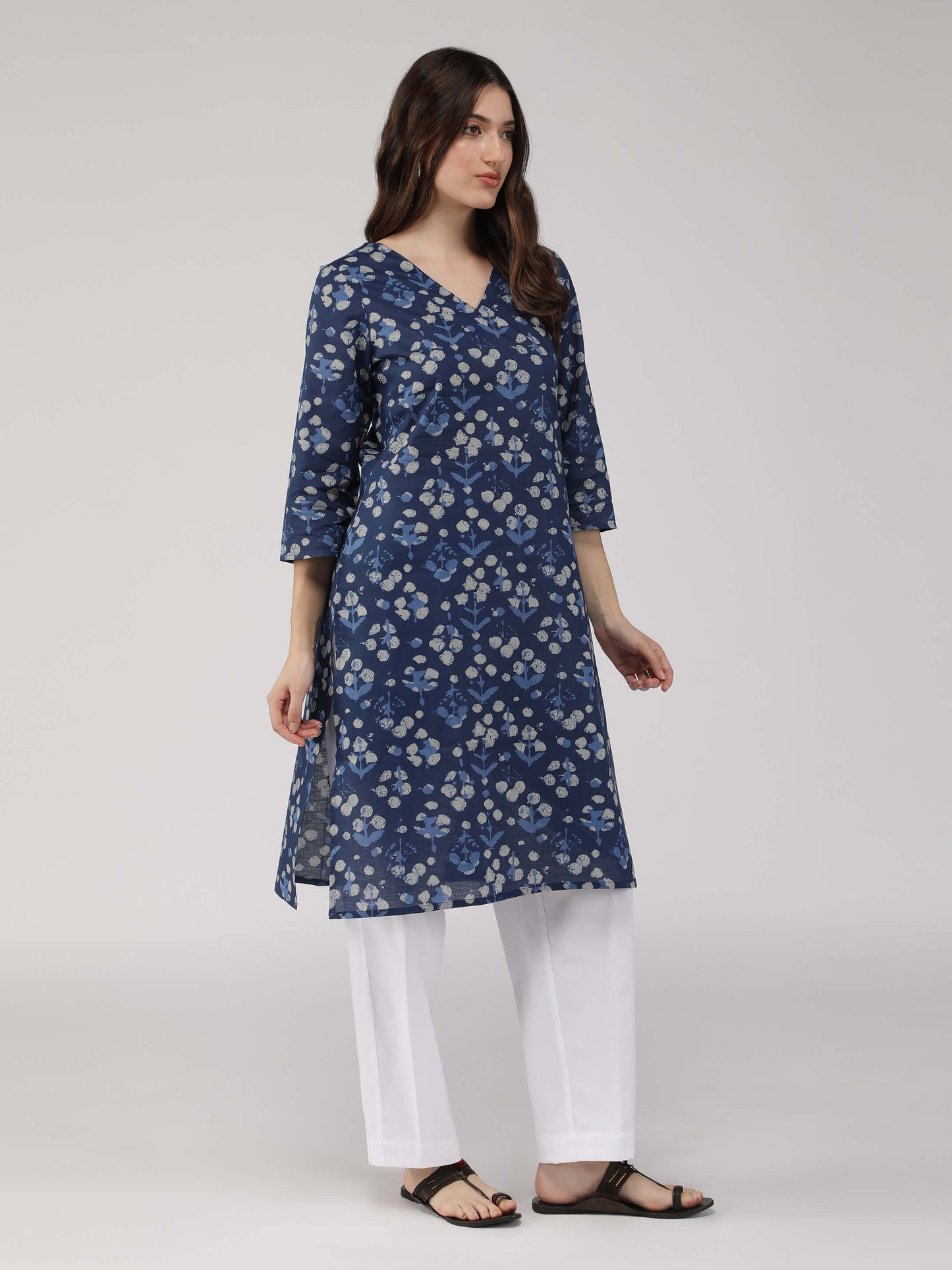 Regular price Rs. 899.00This blue printed kurta is made from soft, breathable rayon fabric to keep you comfortable all day. Its V-neck design provides a flattering fit, while the elegant print adds a touch of style.