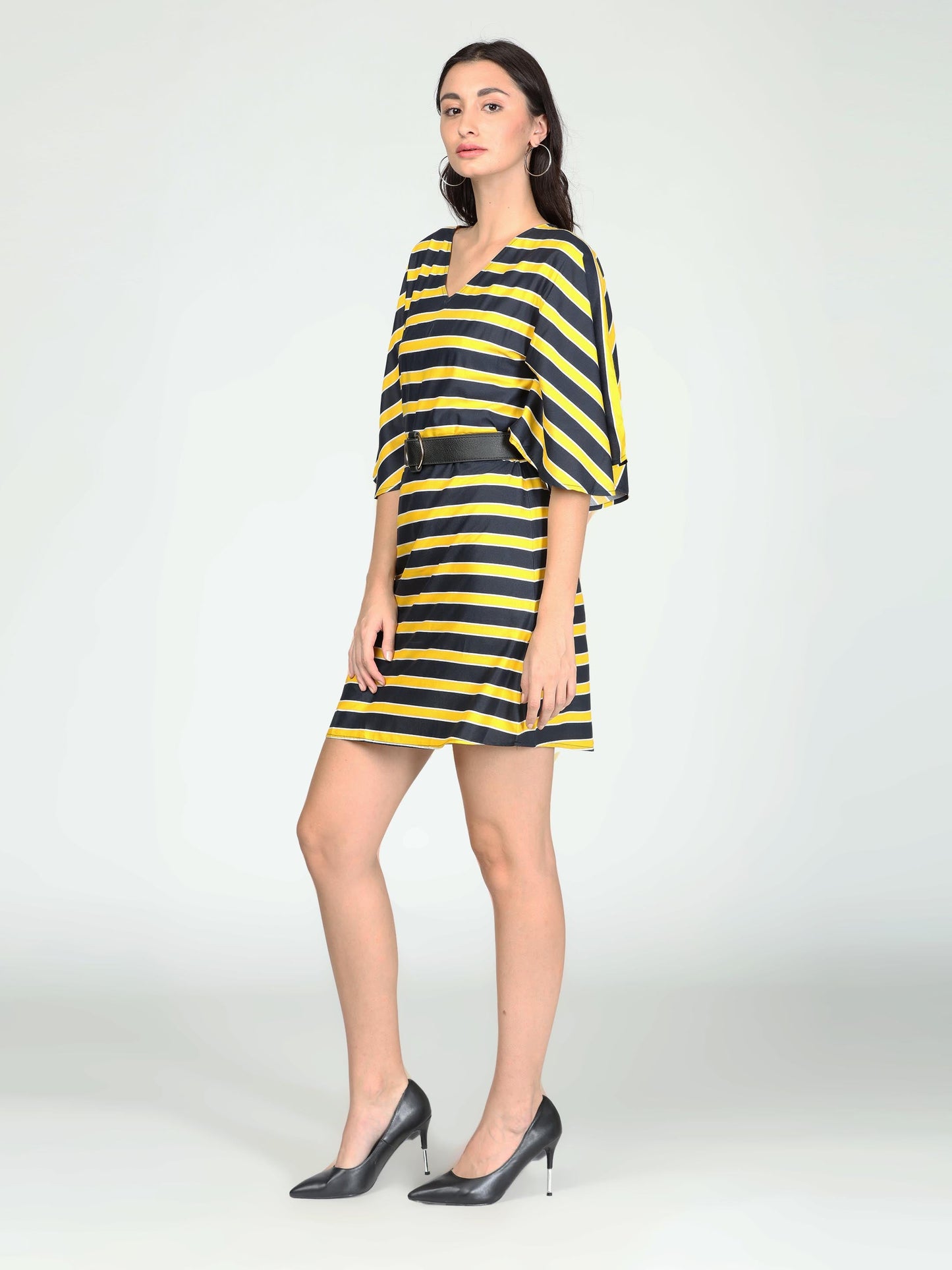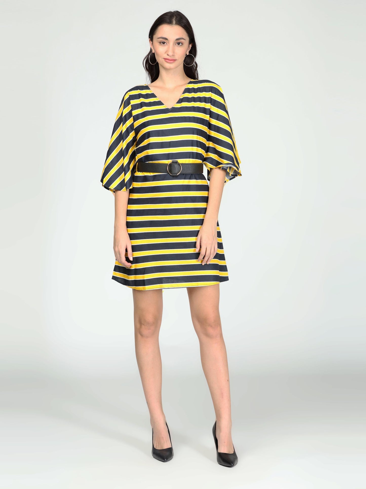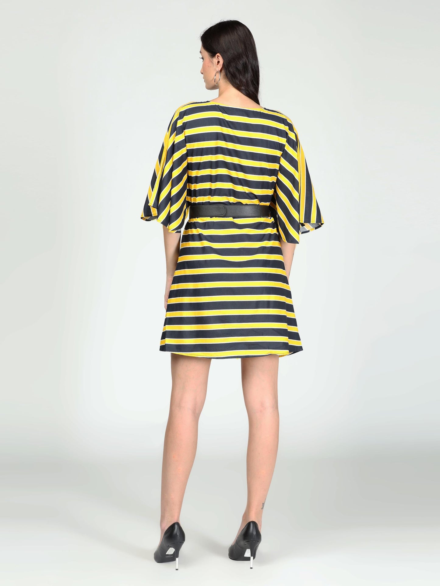 Black and yellow bell sleeves poplin dress in bol stripes.
