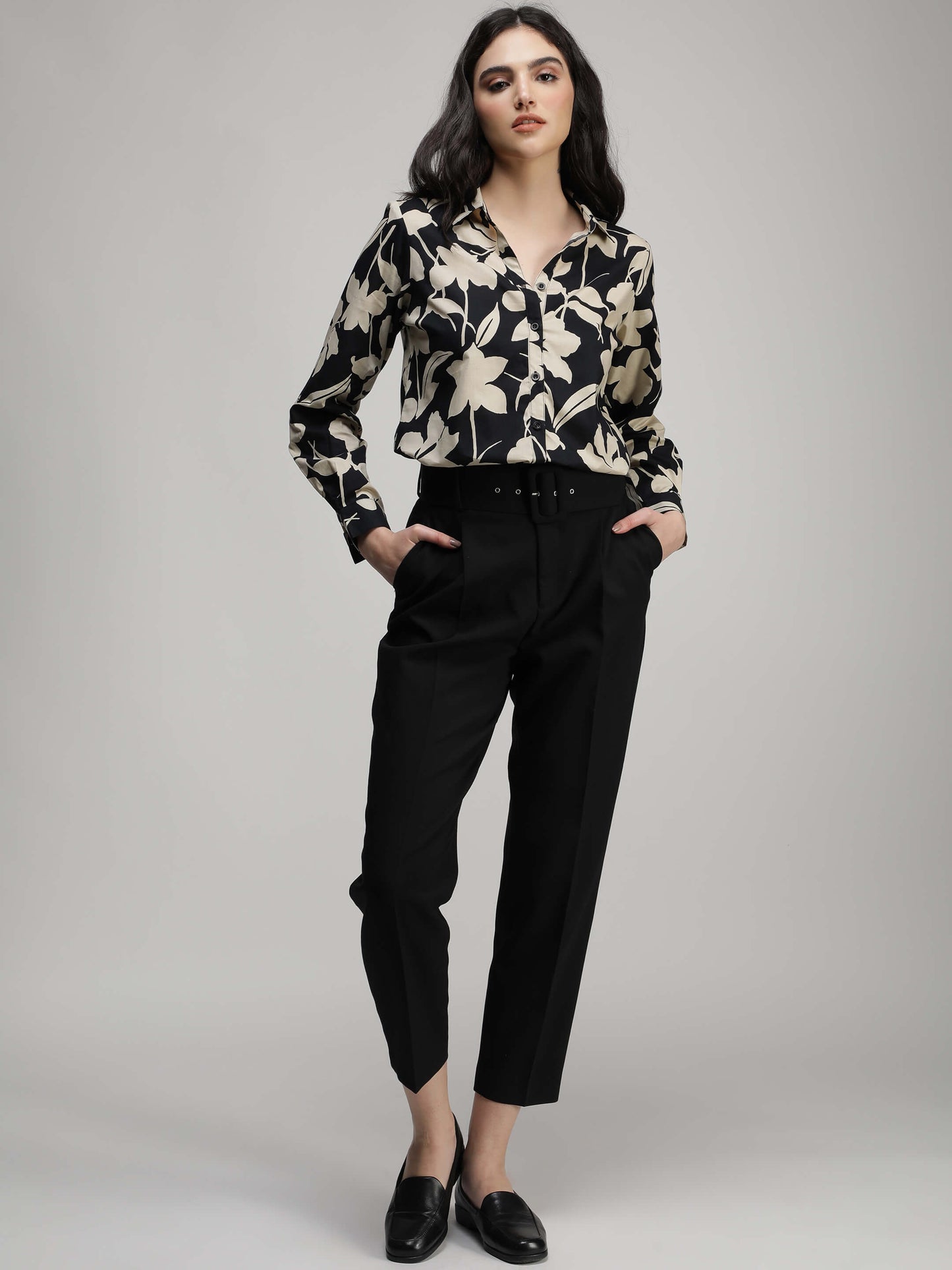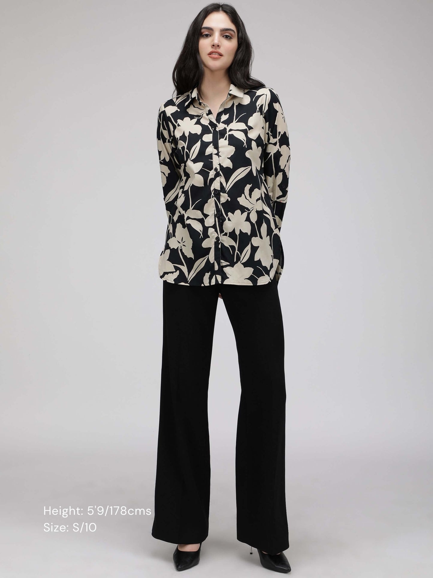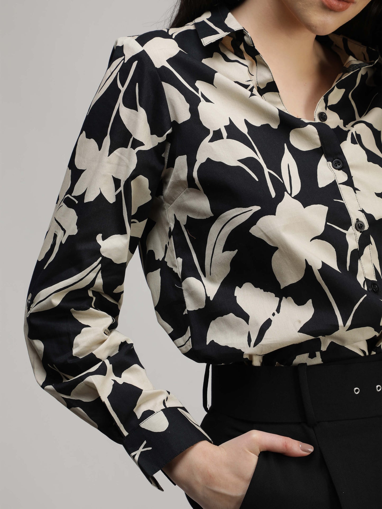 Regular price Rs. 720.00Crafted from classic cotton poplin, featuring a beautiful floral print in beige and black color. It has a regular fit for comfort, full sleeves and an uneven hem for a unique look. Perfect for any occasion.