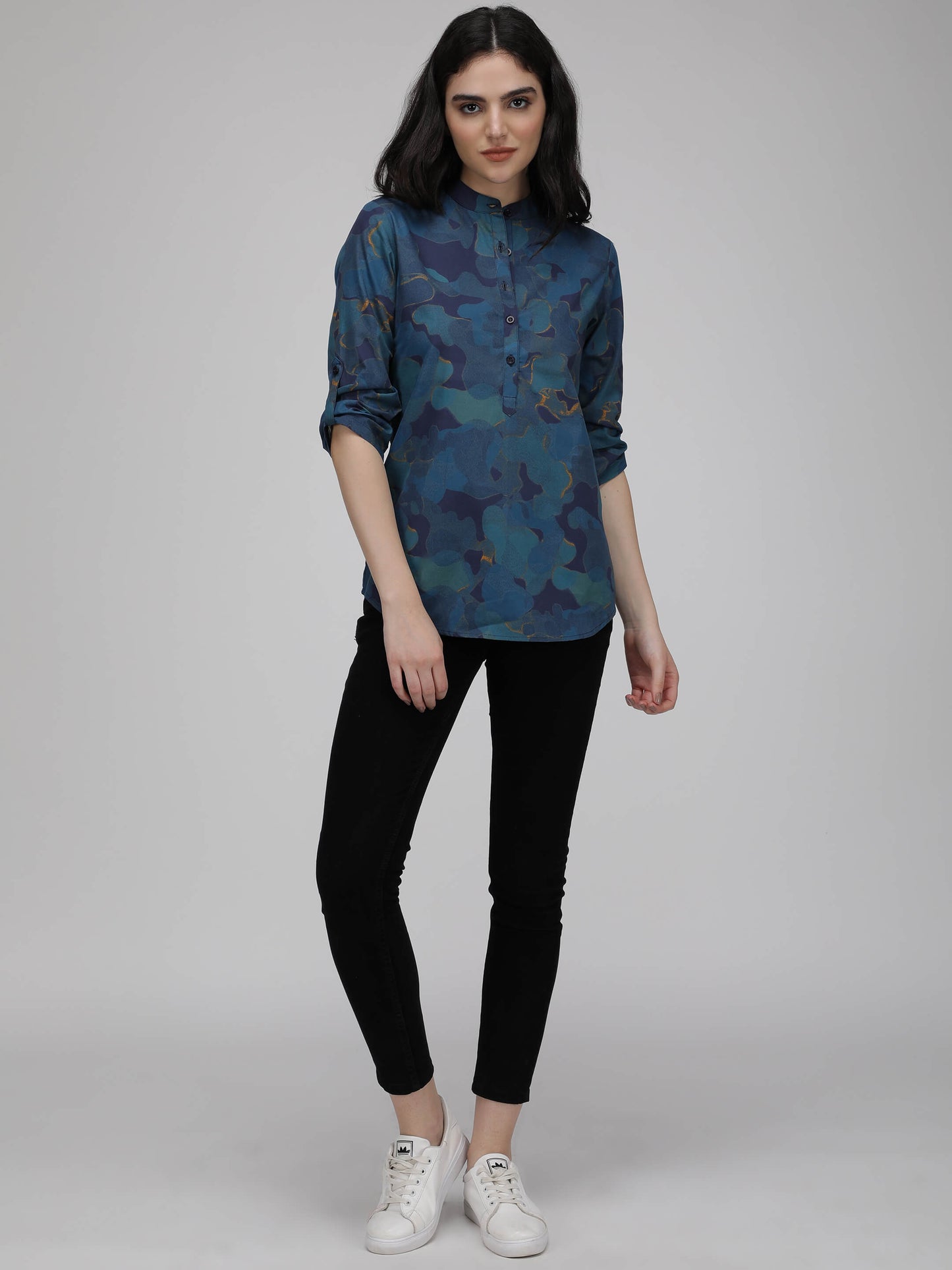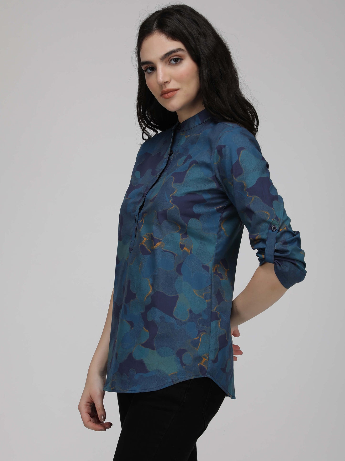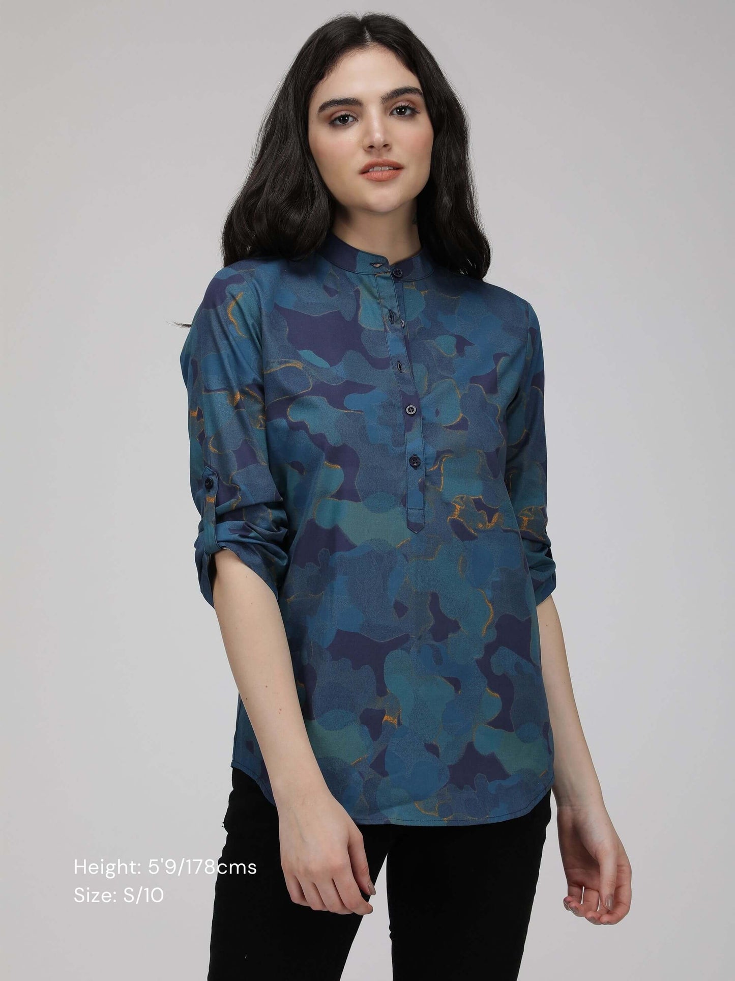 Regular price Rs. 600.00Made from high-quality cotton poplin, it comes with a band collar and 3/4th sleeves for a snug and comfortable fit. Perfect for everyday wear,