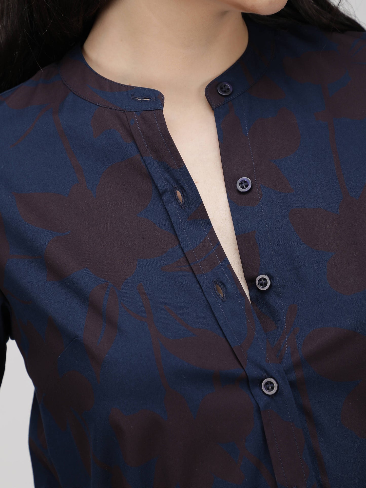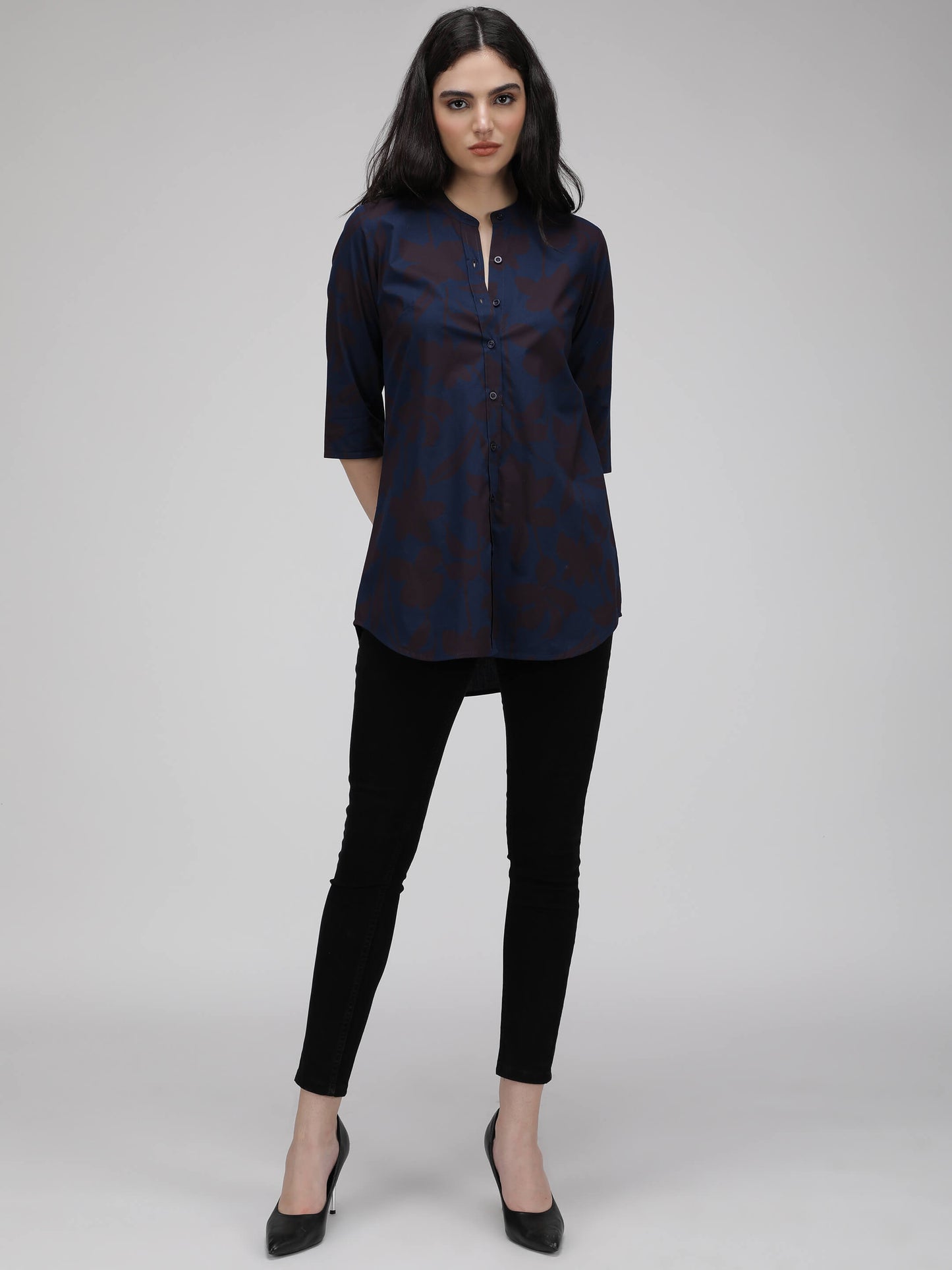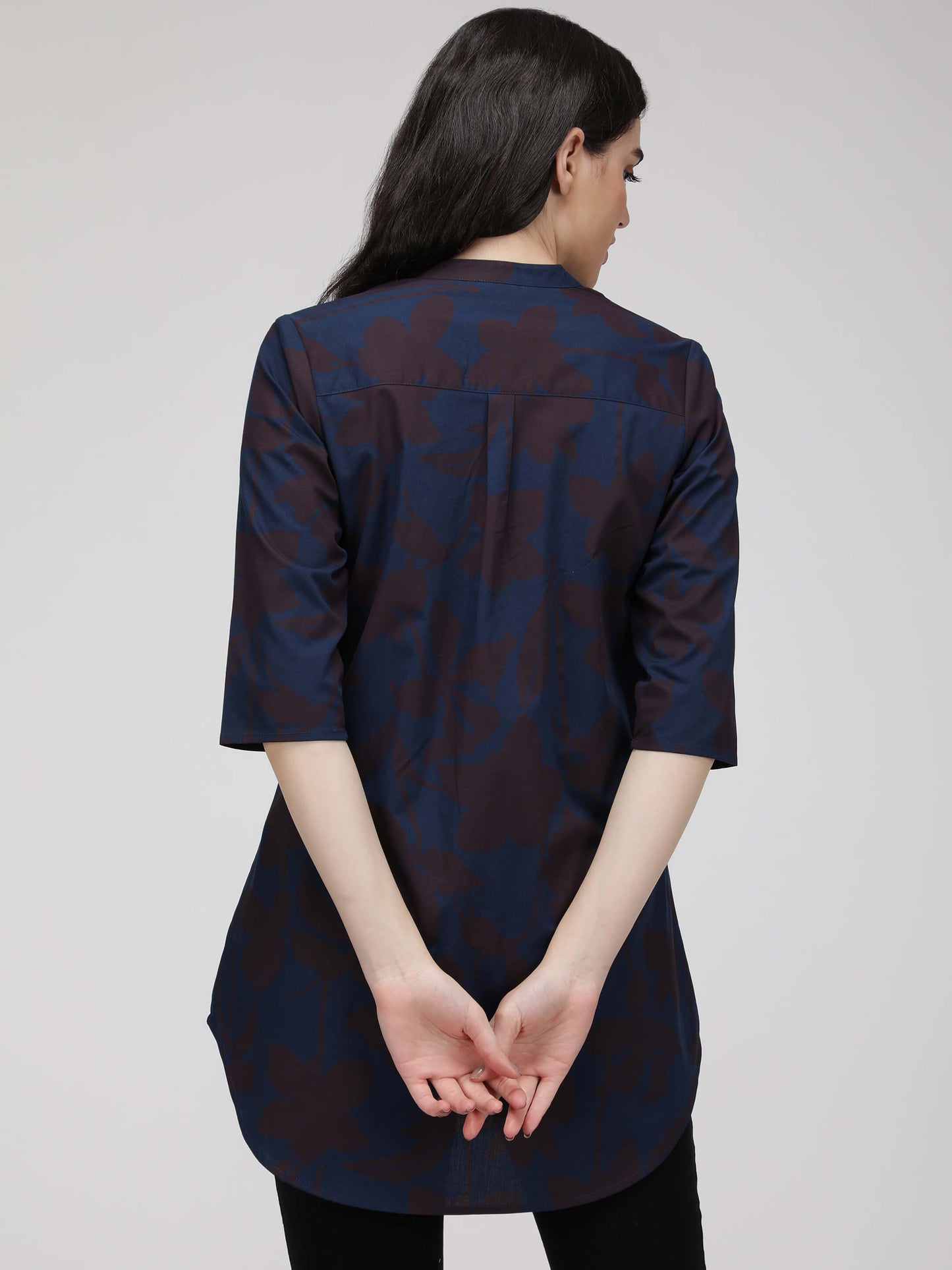 Regular price Rs. 660.00Crafted from high-quality cotton poplin fabric, our tunic showcases a delightful blue print and features three-quarter-length sleeves. With its regular fit, band collar, and stylish uneven hem, this tunic exudes both comfort and elegance.