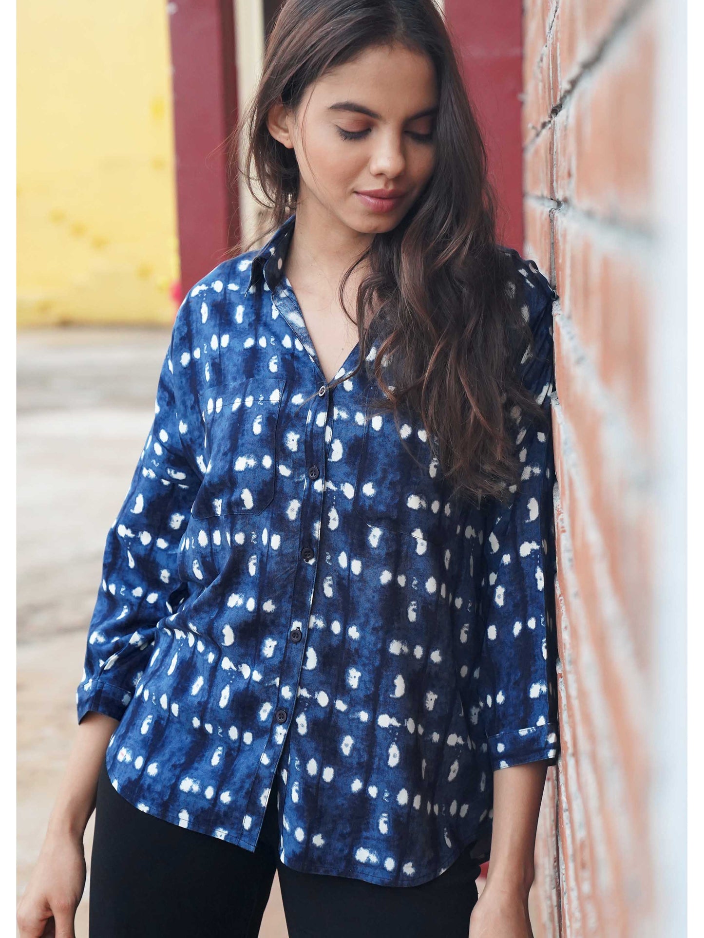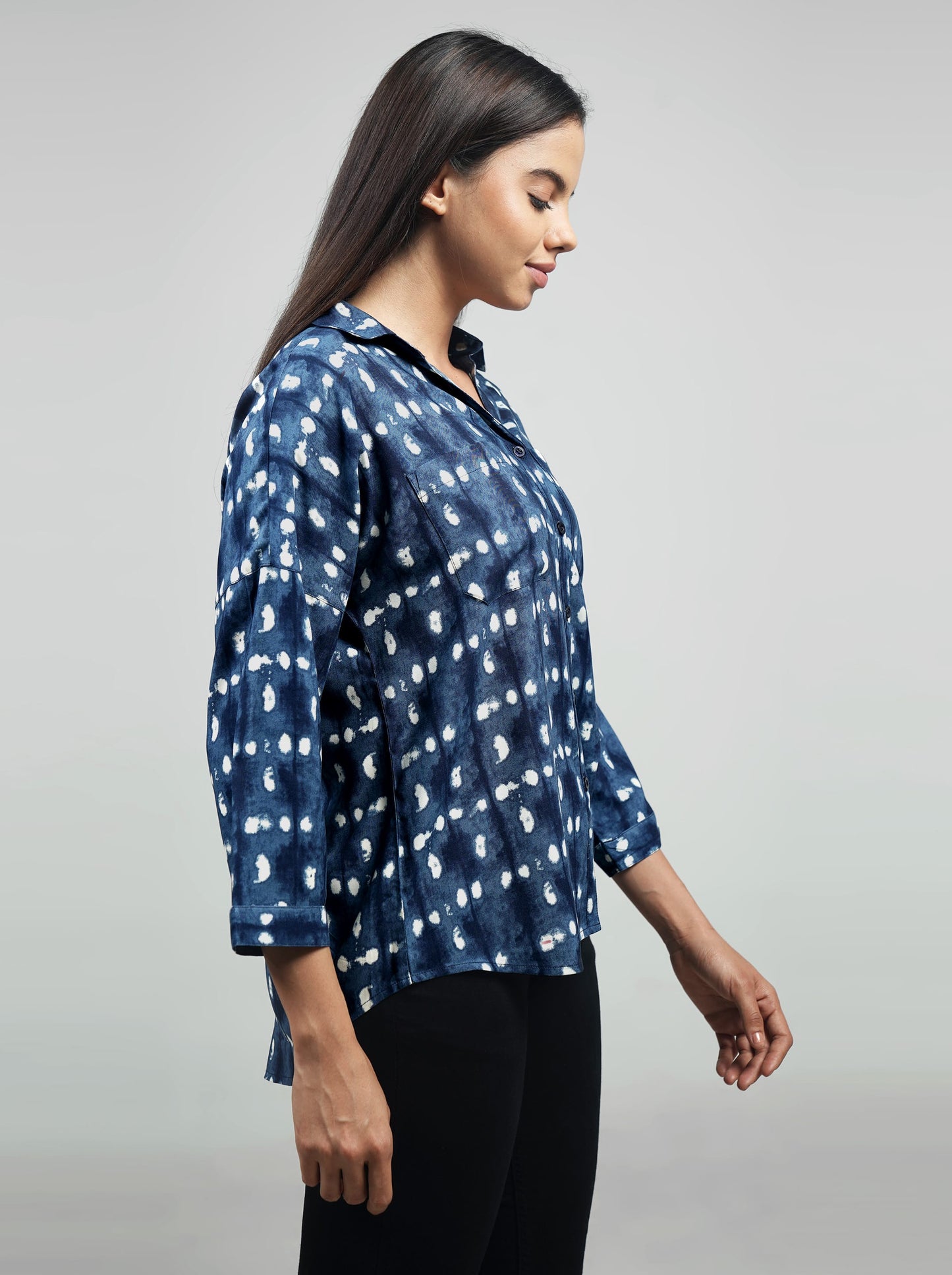This relaxed fit, tie-dye shirt is crafted from lightweight rayon fabric. It features dropped shoulders and three quarter sleeves, perfect for casual days. An easy addition to any summer wardrobe.