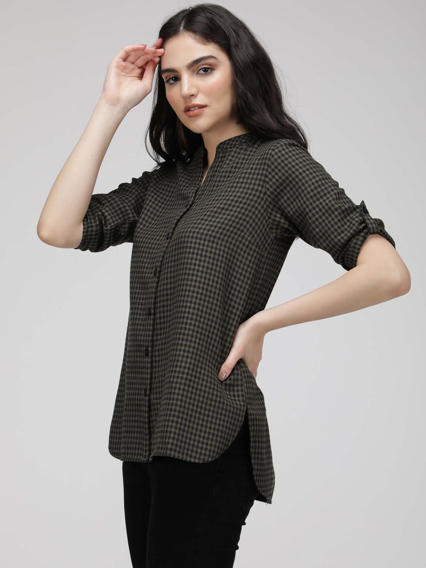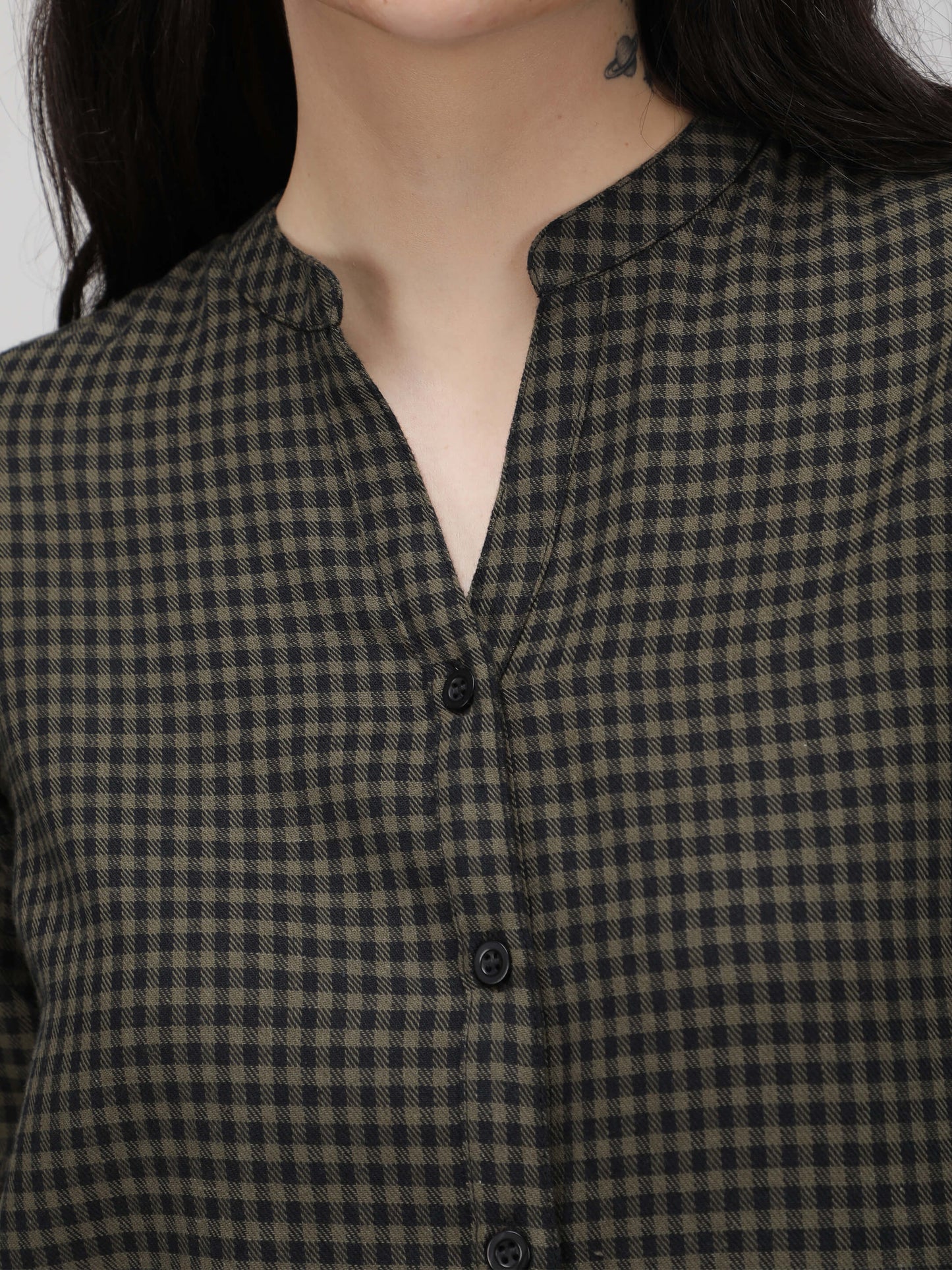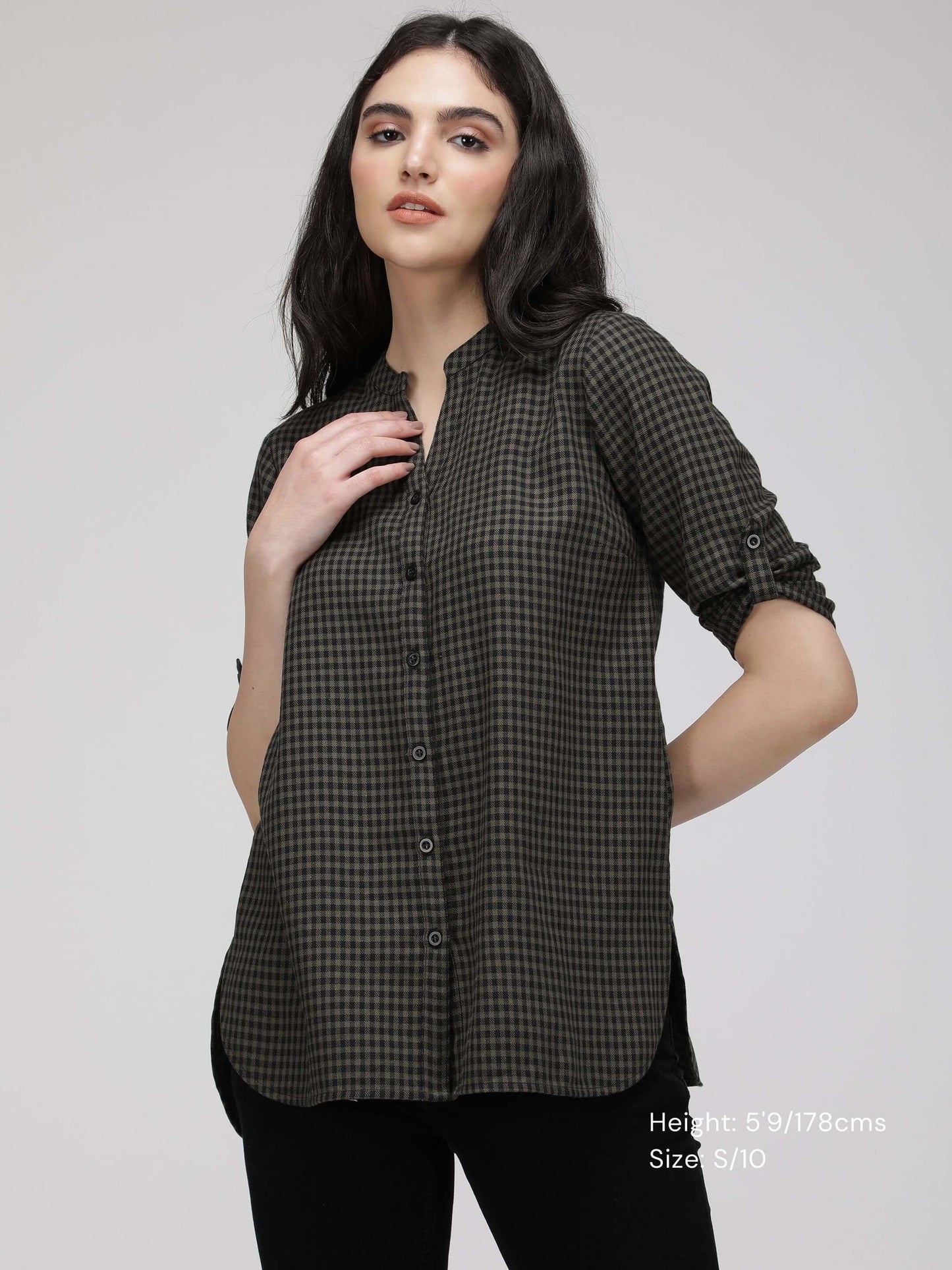 Regular price Rs. 660.00Introducing this seasons perfect staple for the fashion-conscious - this regular fit, checkered shirt crafted from premium rayon flannel features stylish three-quarter sleeves and a band collar.