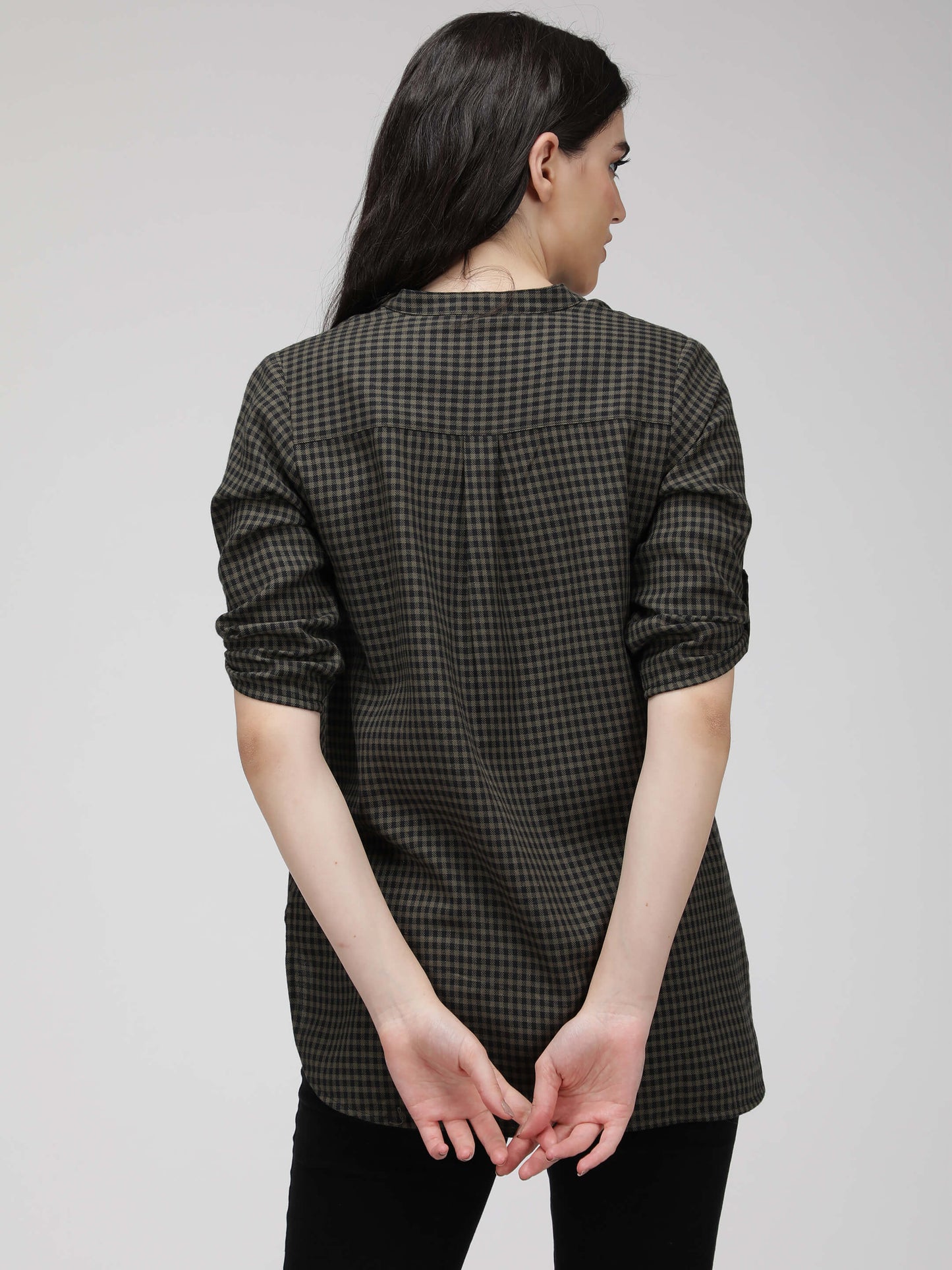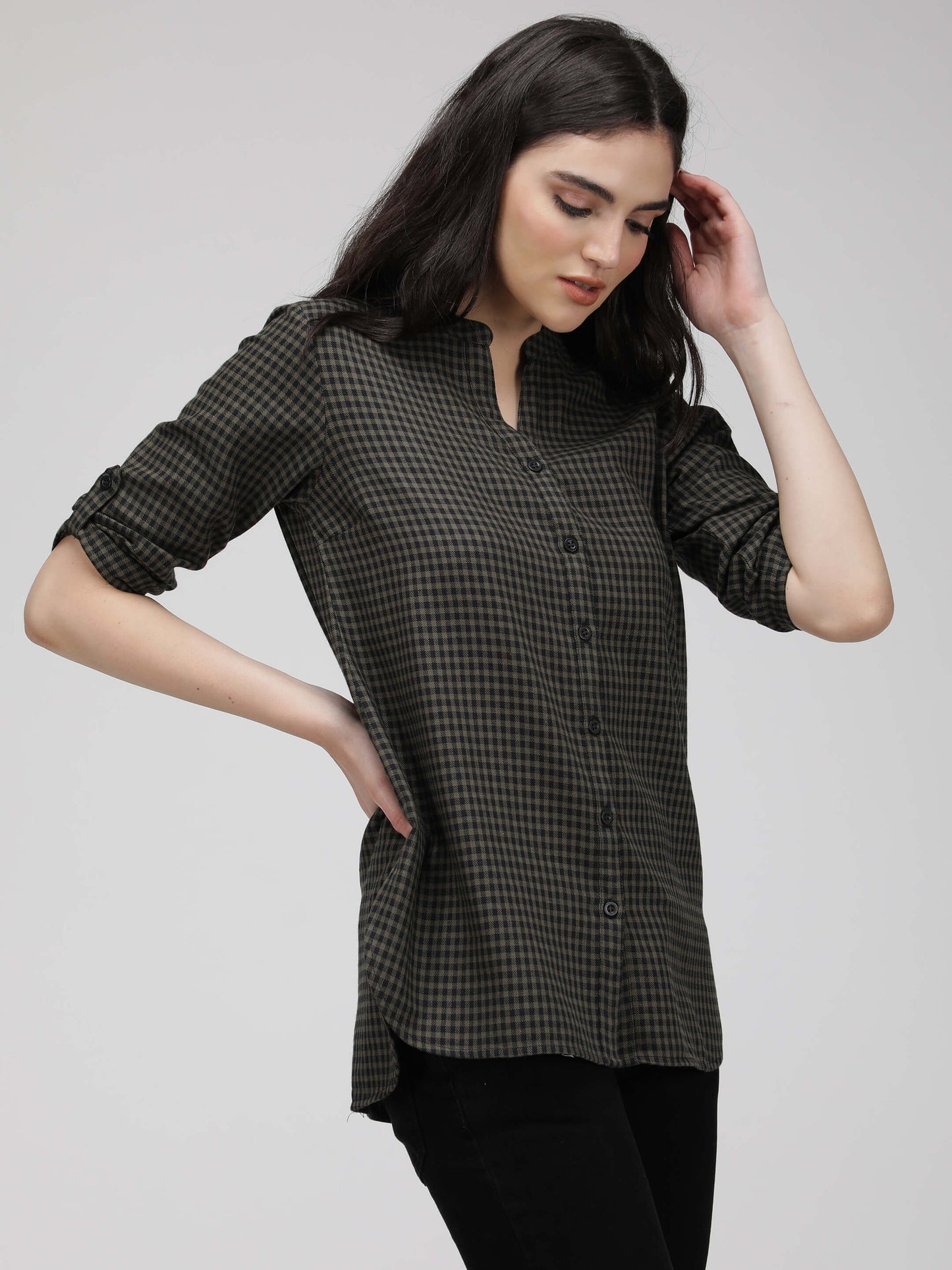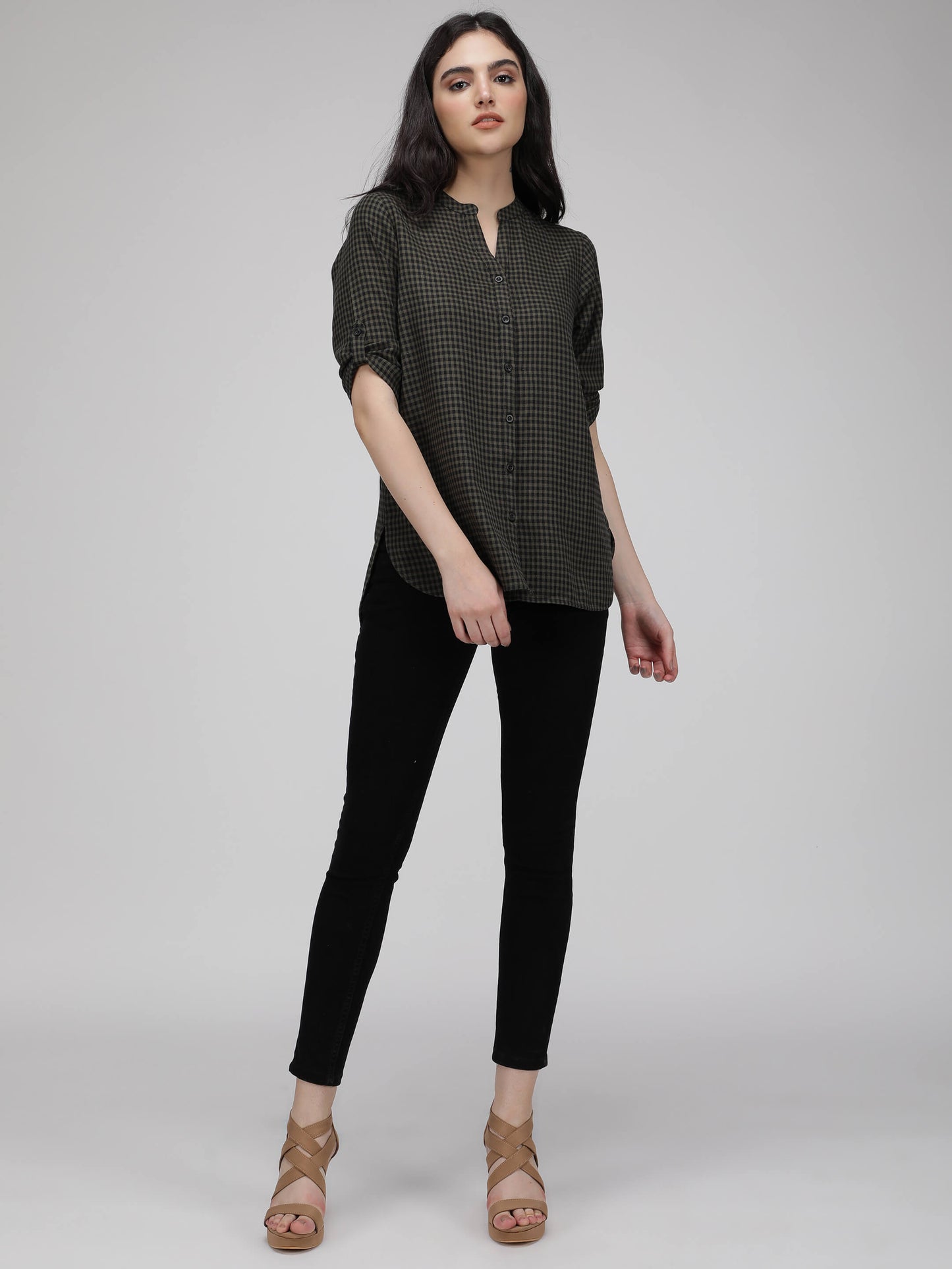 Regular price Rs. 660.00Introducing this seasons perfect staple for the fashion-conscious - this regular fit, checkered shirt crafted from premium rayon flannel features stylish three-quarter sleeves and a band collar.