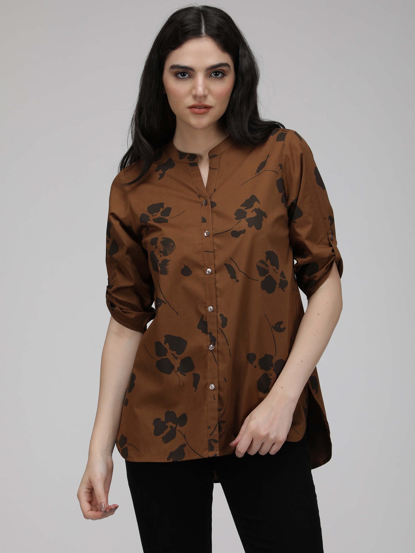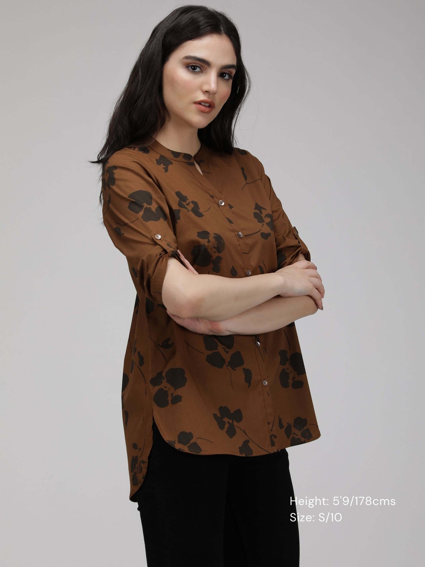 Regular price Rs. 660.00Introducing our Brown Floral Cotton Poplin 3/4th Sleeves Shirt. Crafted from high-quality cotton poplin with a band collar and regular fit, it's the perfect addition to your everyday wardrobe.