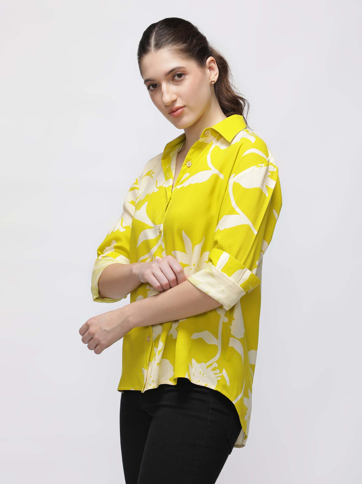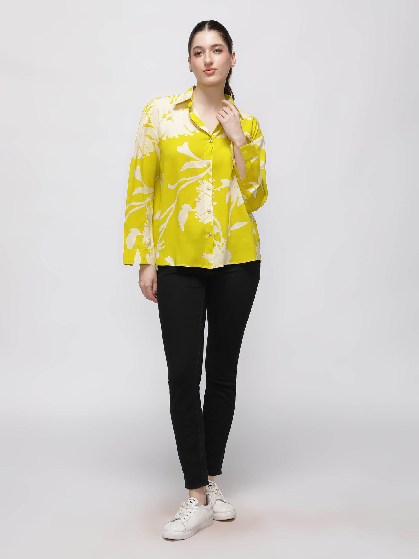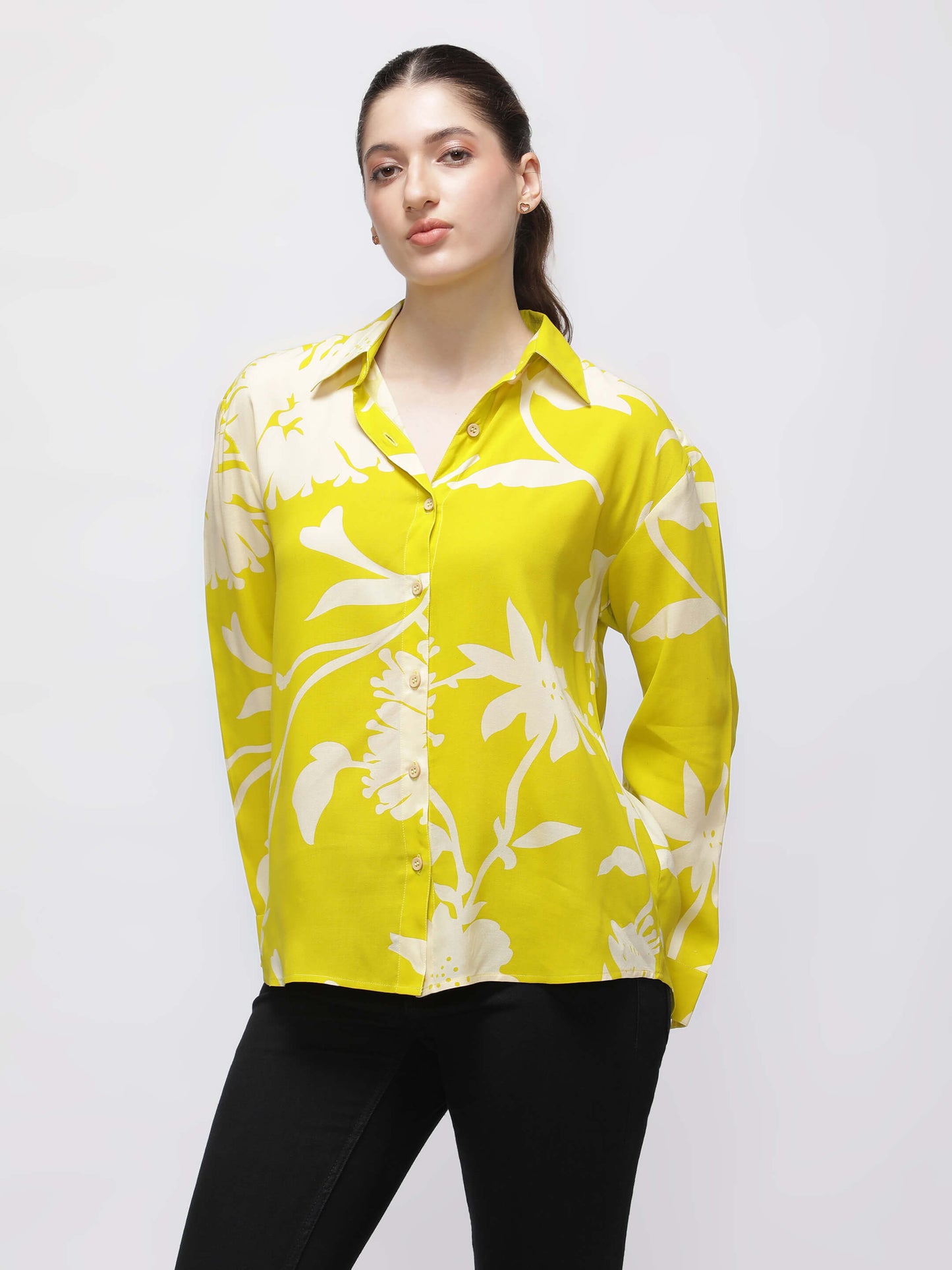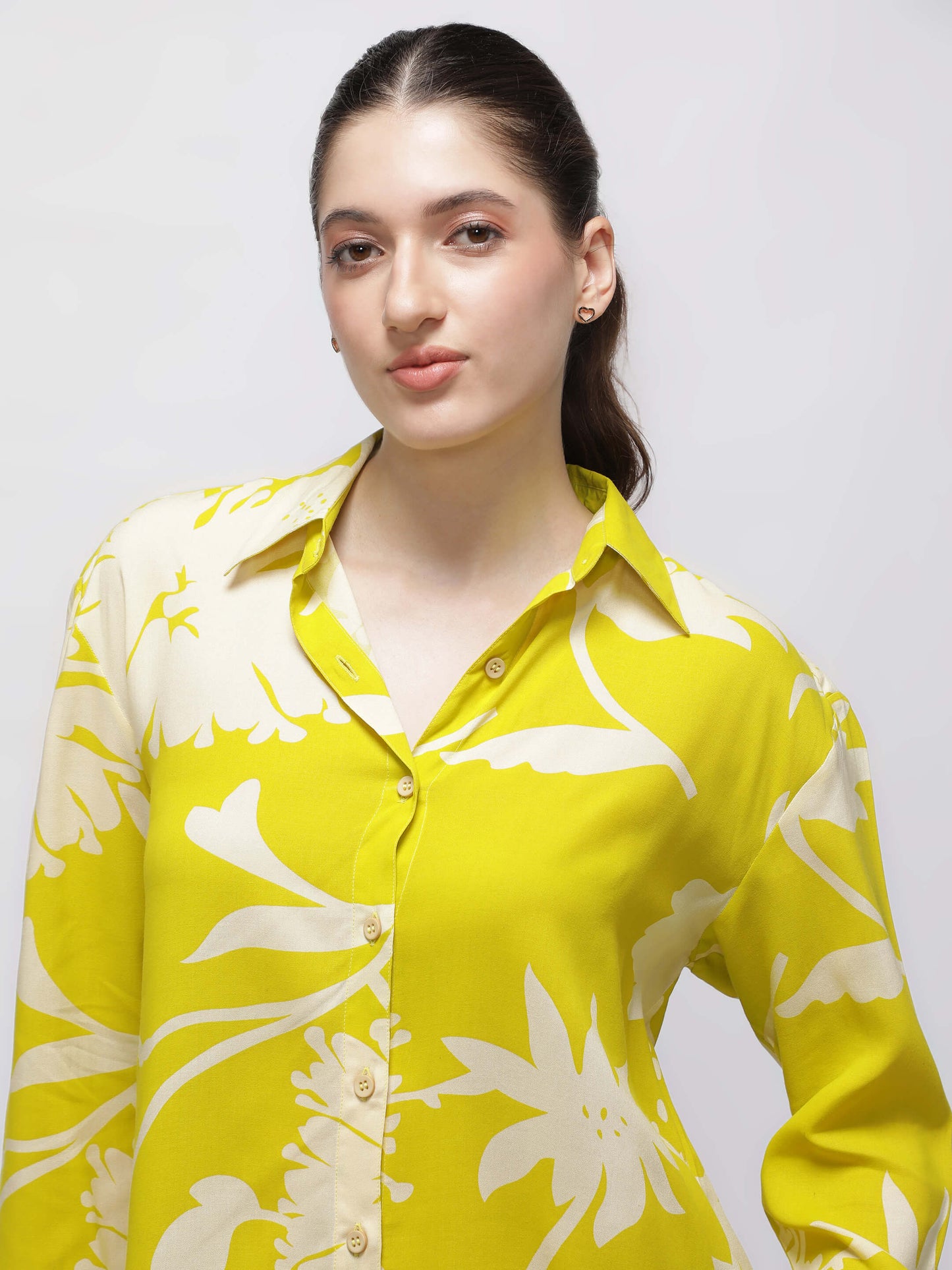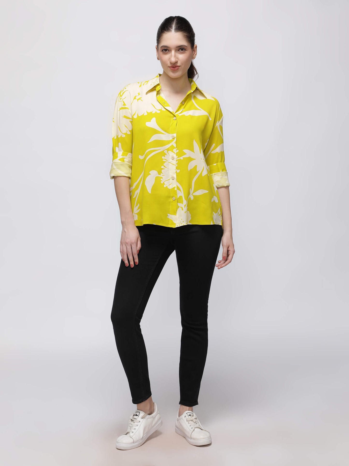 Freshen up your wardrobe with this lime green floral print shirt in a classic regular fit. Designed for comfort and style, it’s perfect for casual outings or workdays.