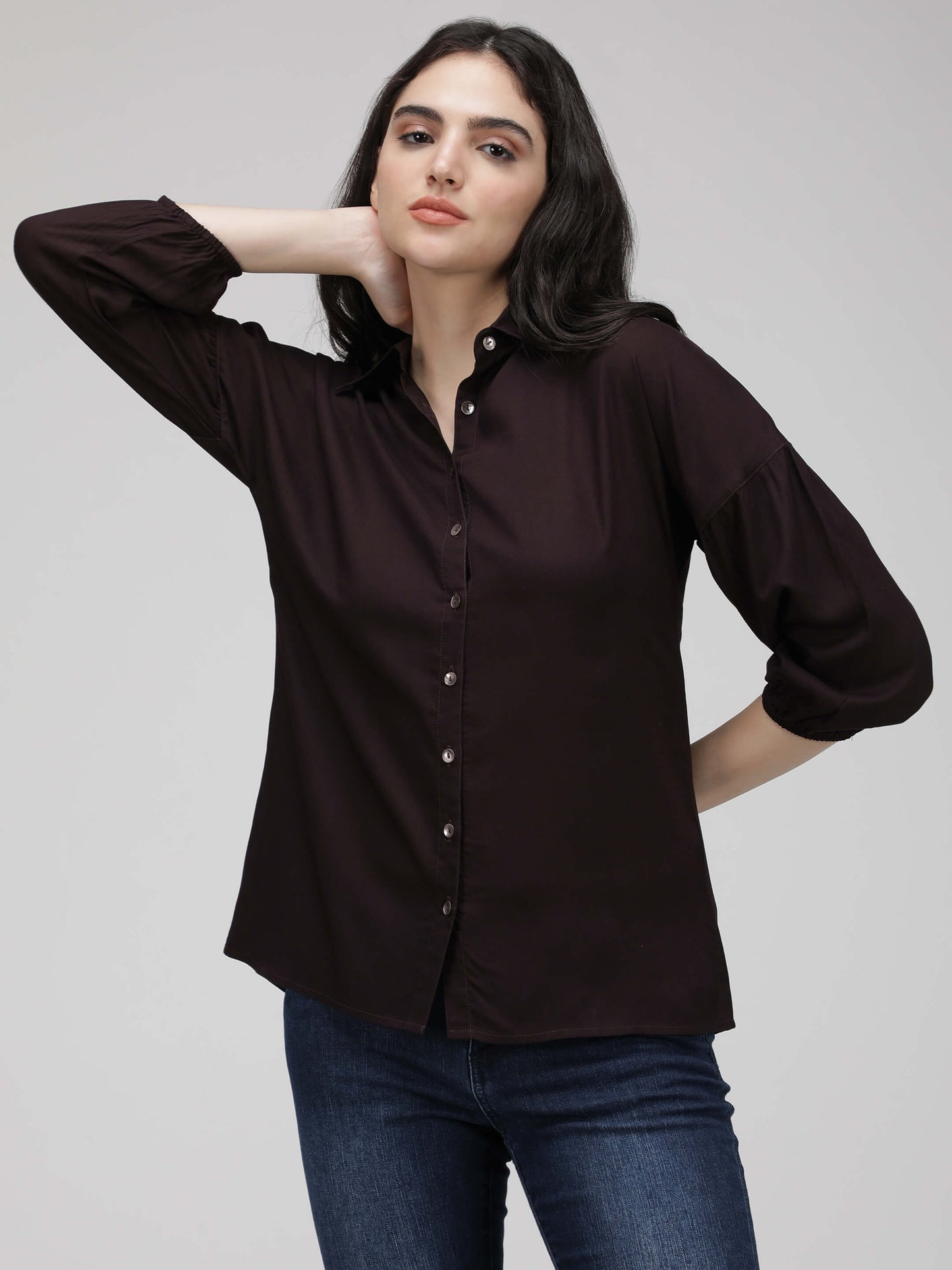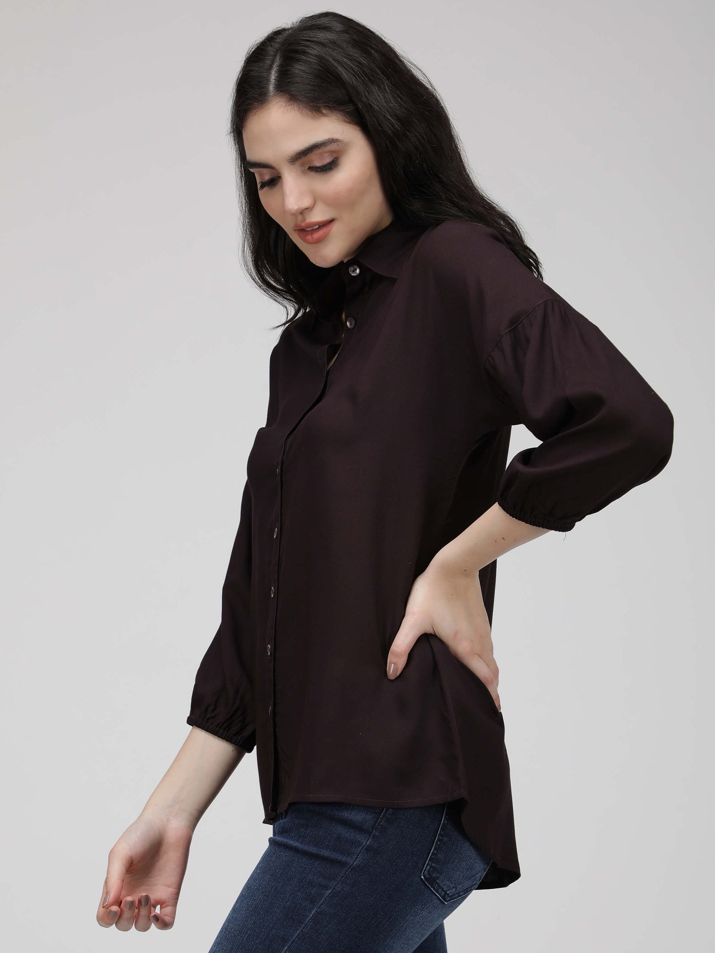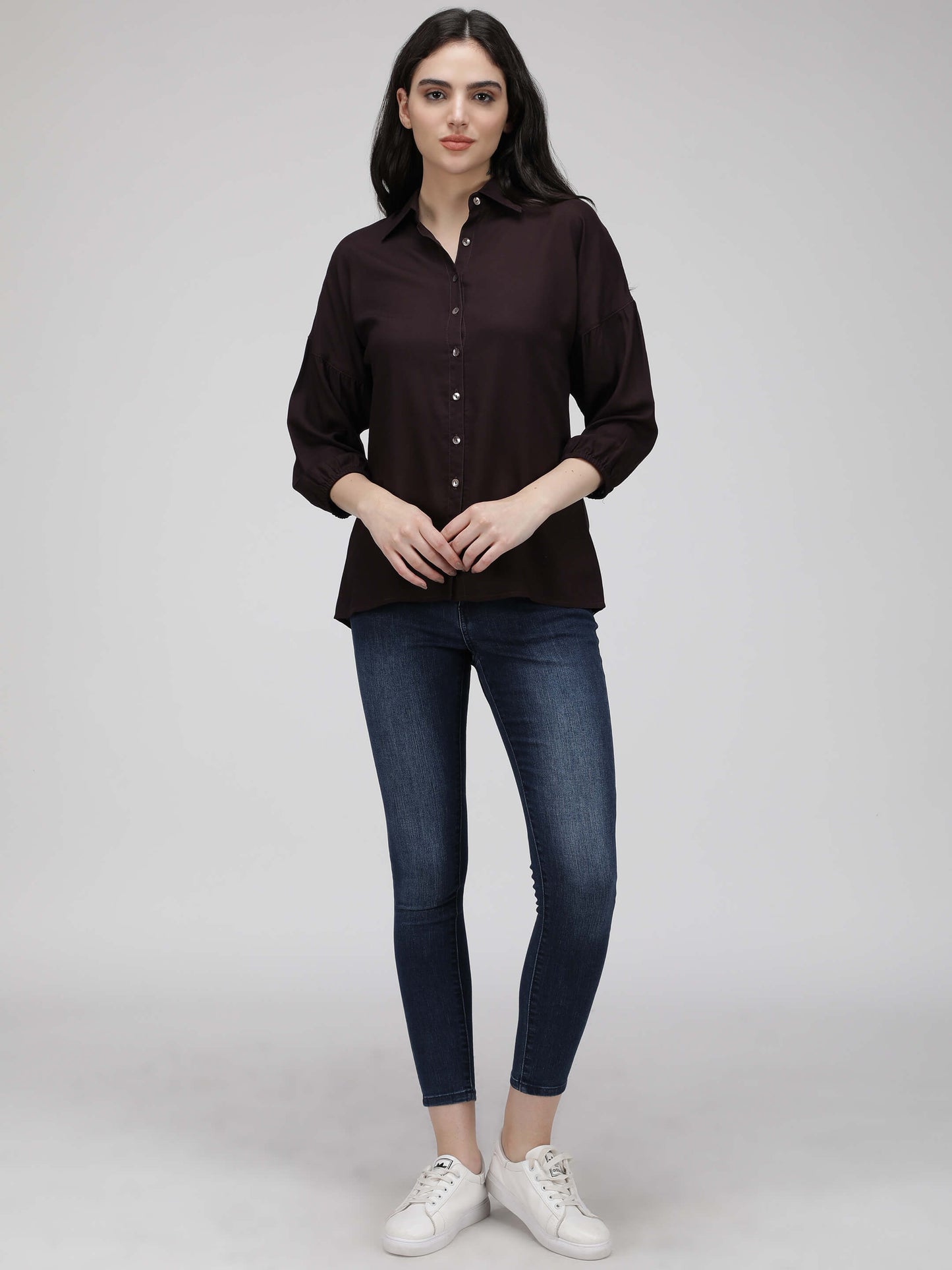 Crafted from soft rayon, it features loose-fit extended shoulders and bishop sleeves for optimum comfort.
