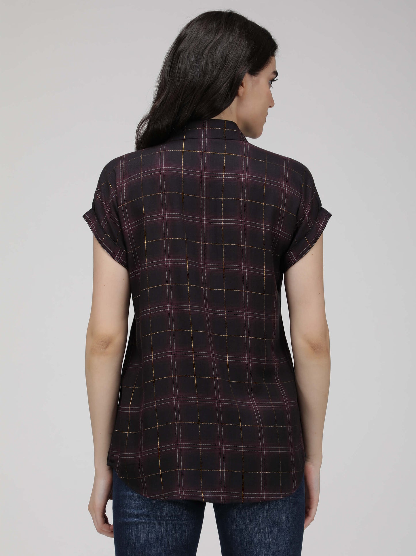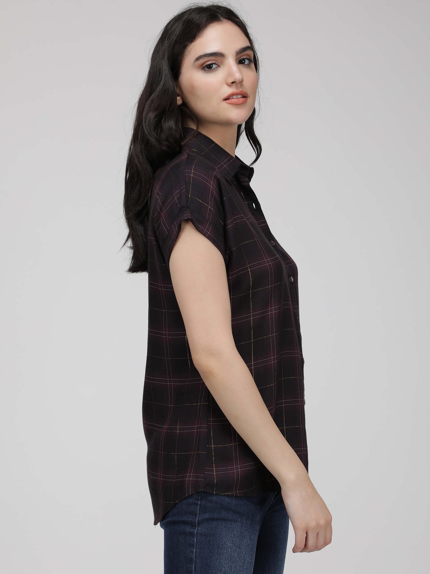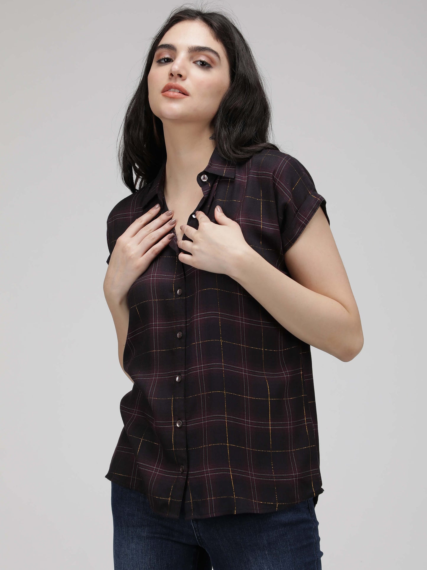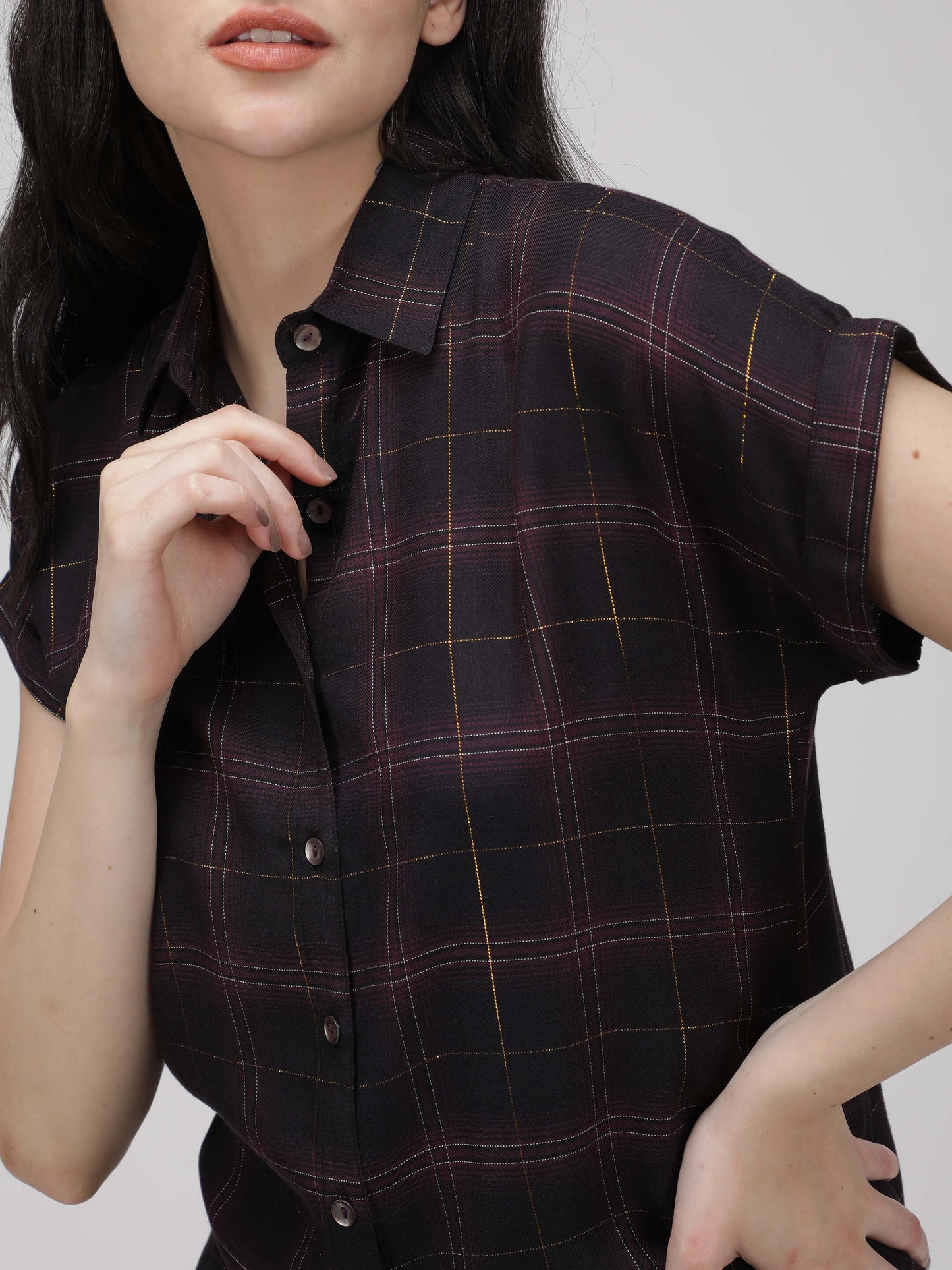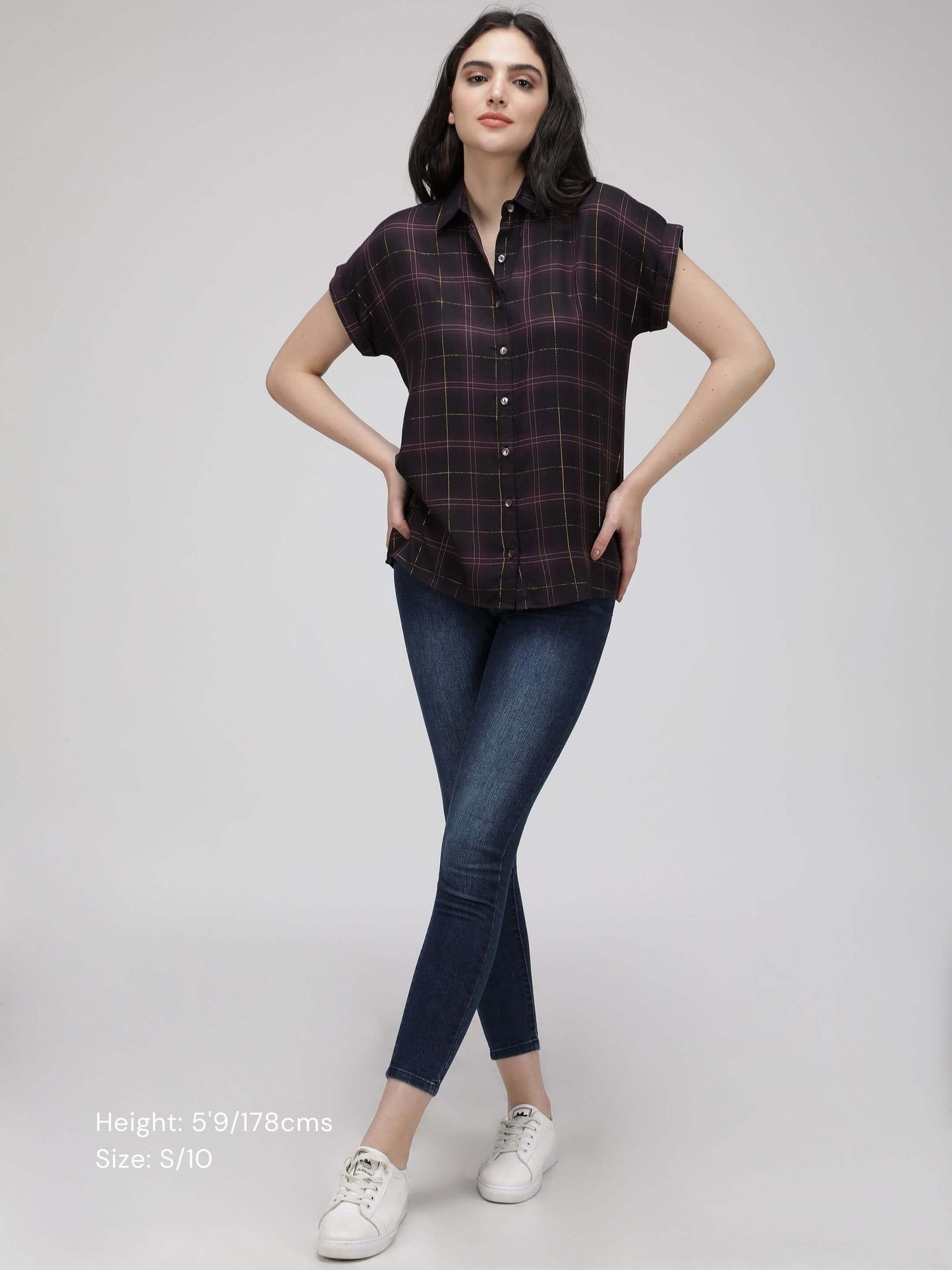 Regular price Rs. 600.00This regular fit purple checkered top is crafted from lightweight rayon twill fabric and features extended shoulder sleeves for a stylish and modern fit. The fabric is lightweight and breathable, perfect for day to day wear.