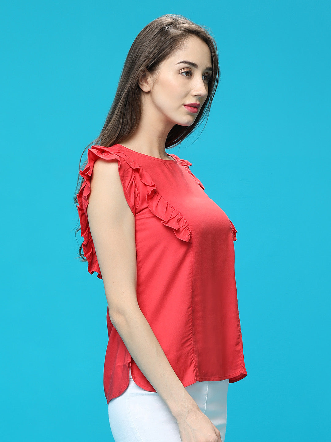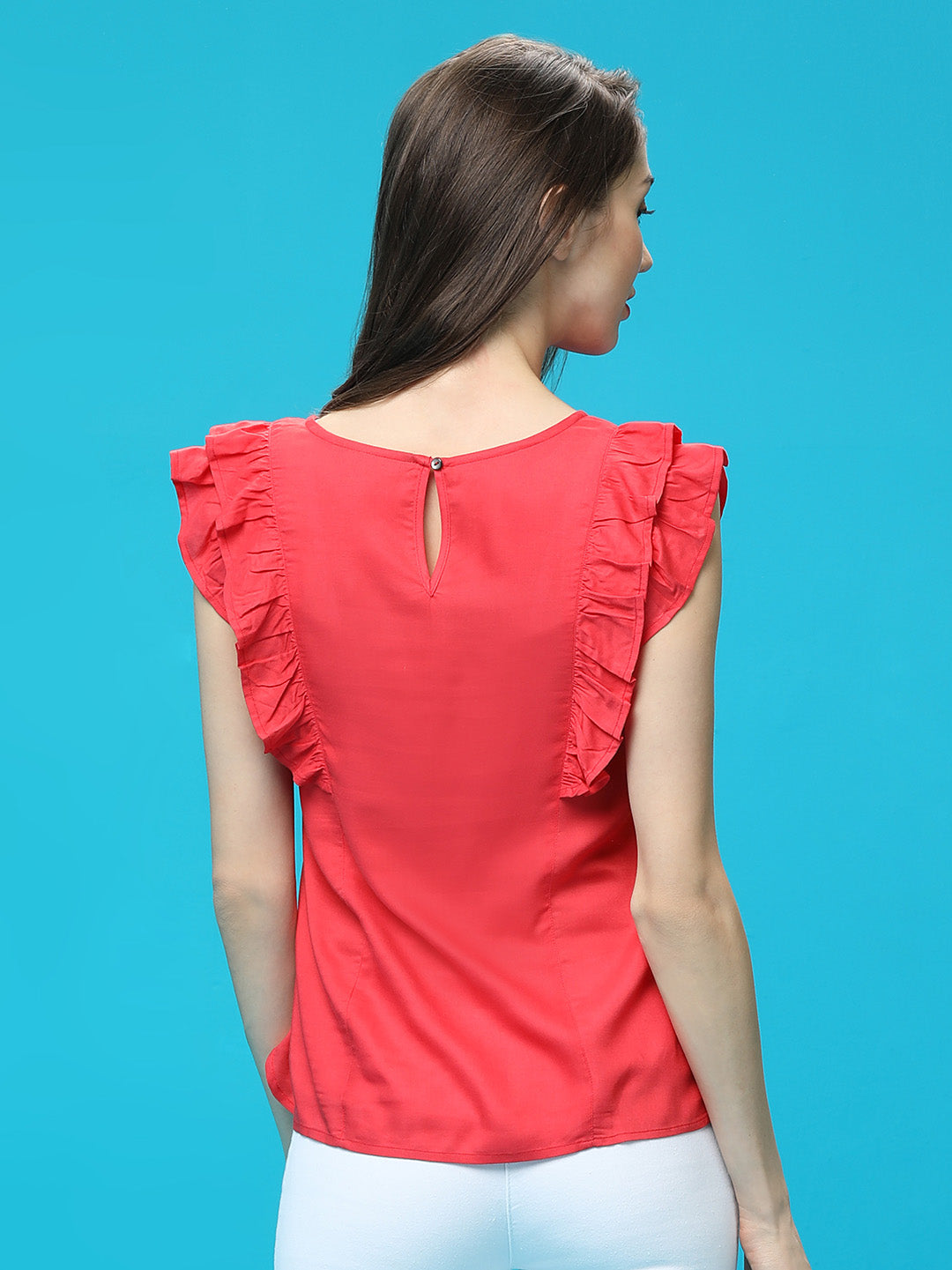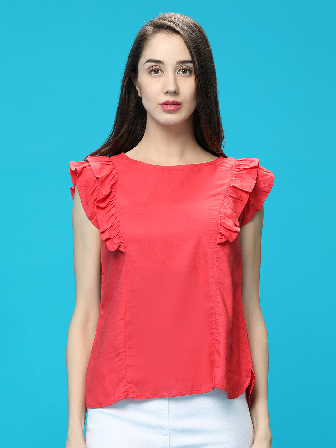 Coral Ruffled Top