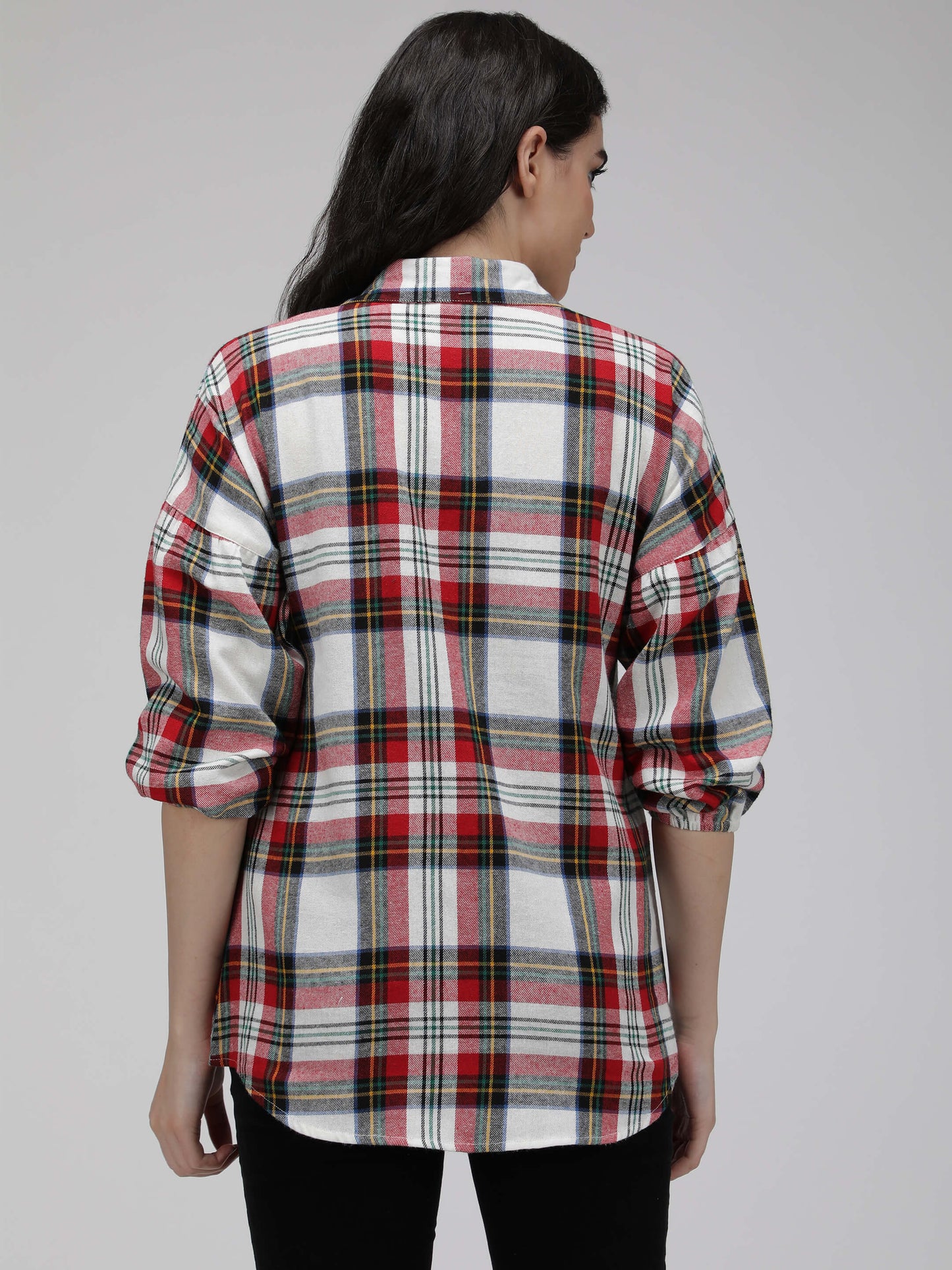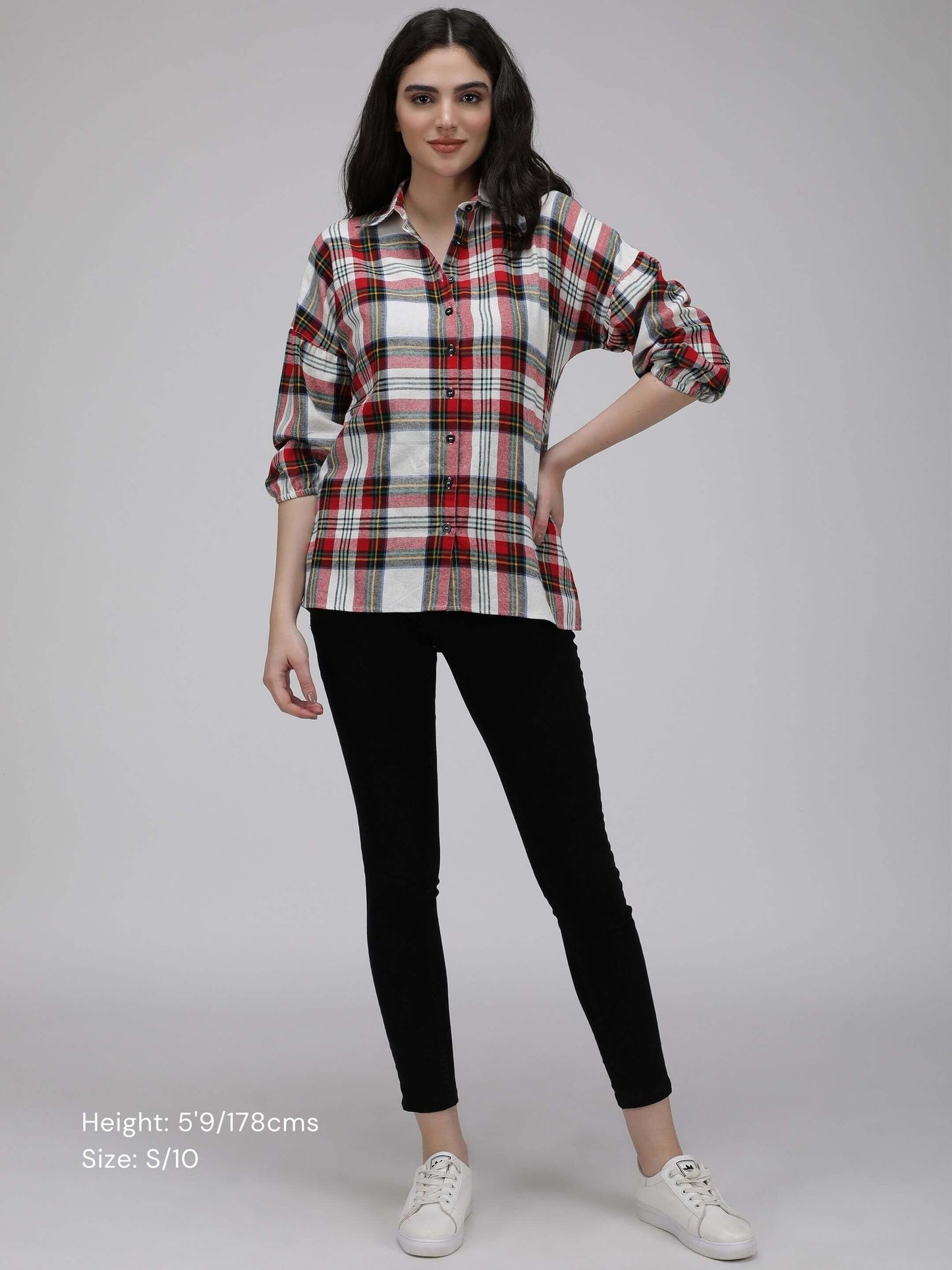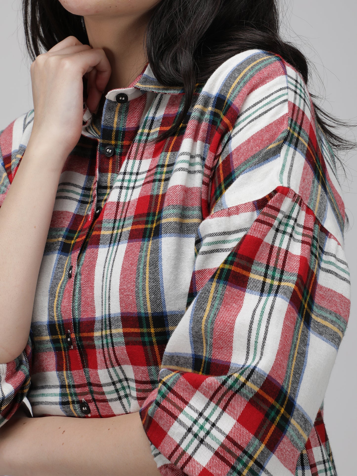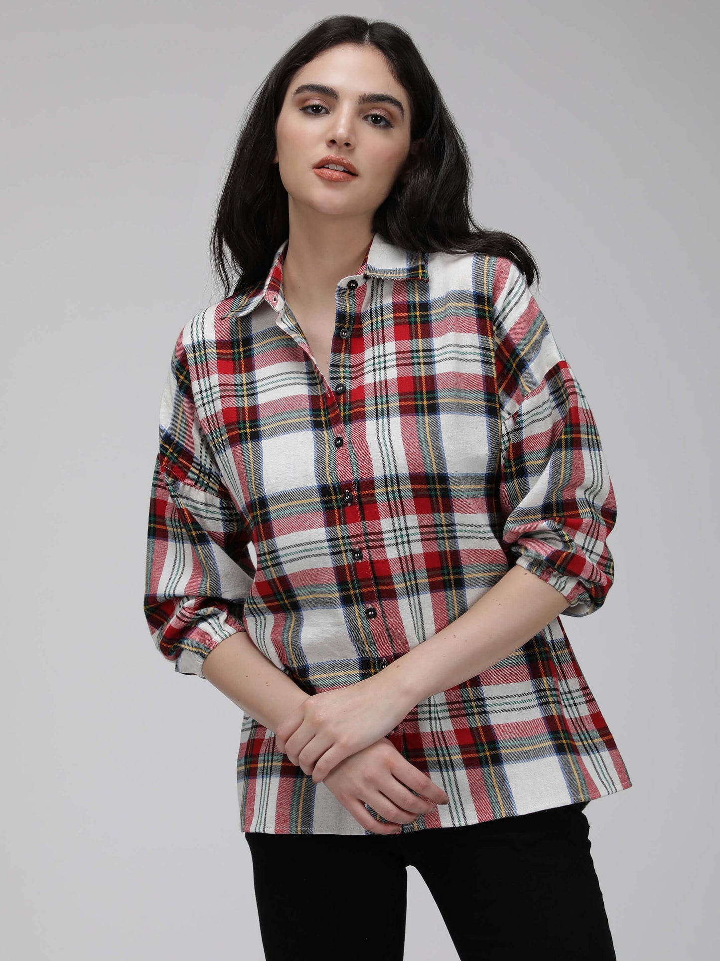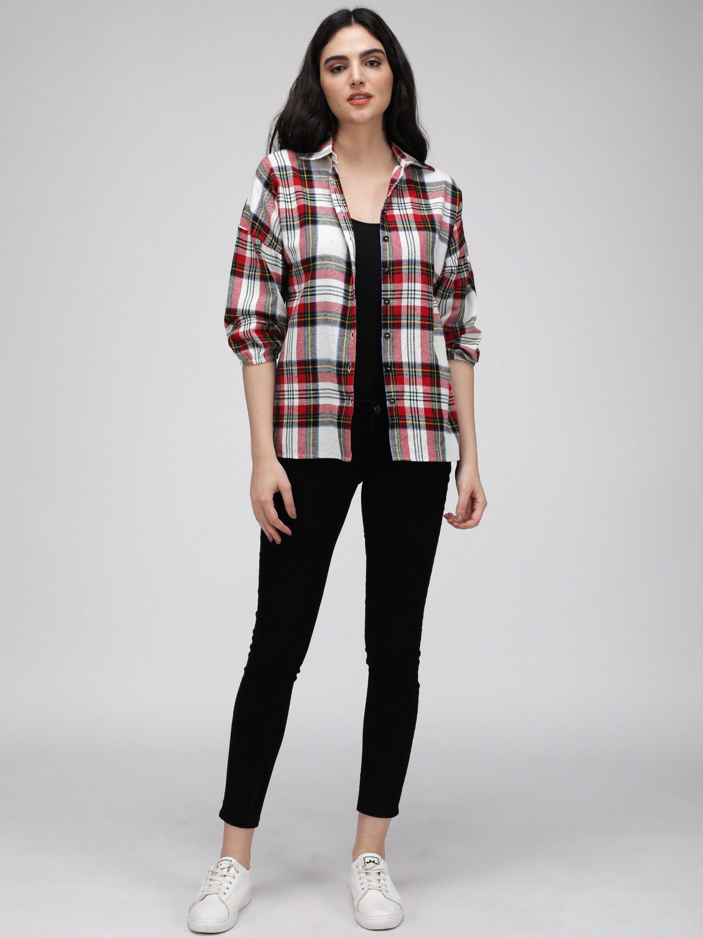 Regular price Rs. 780.00Crafted from premium rayon fabric, this shirt features a classic checkered print with a unique red and white color palette. Its extended shoulders and 3/4th sleeves make it a timeless, stylish choice.